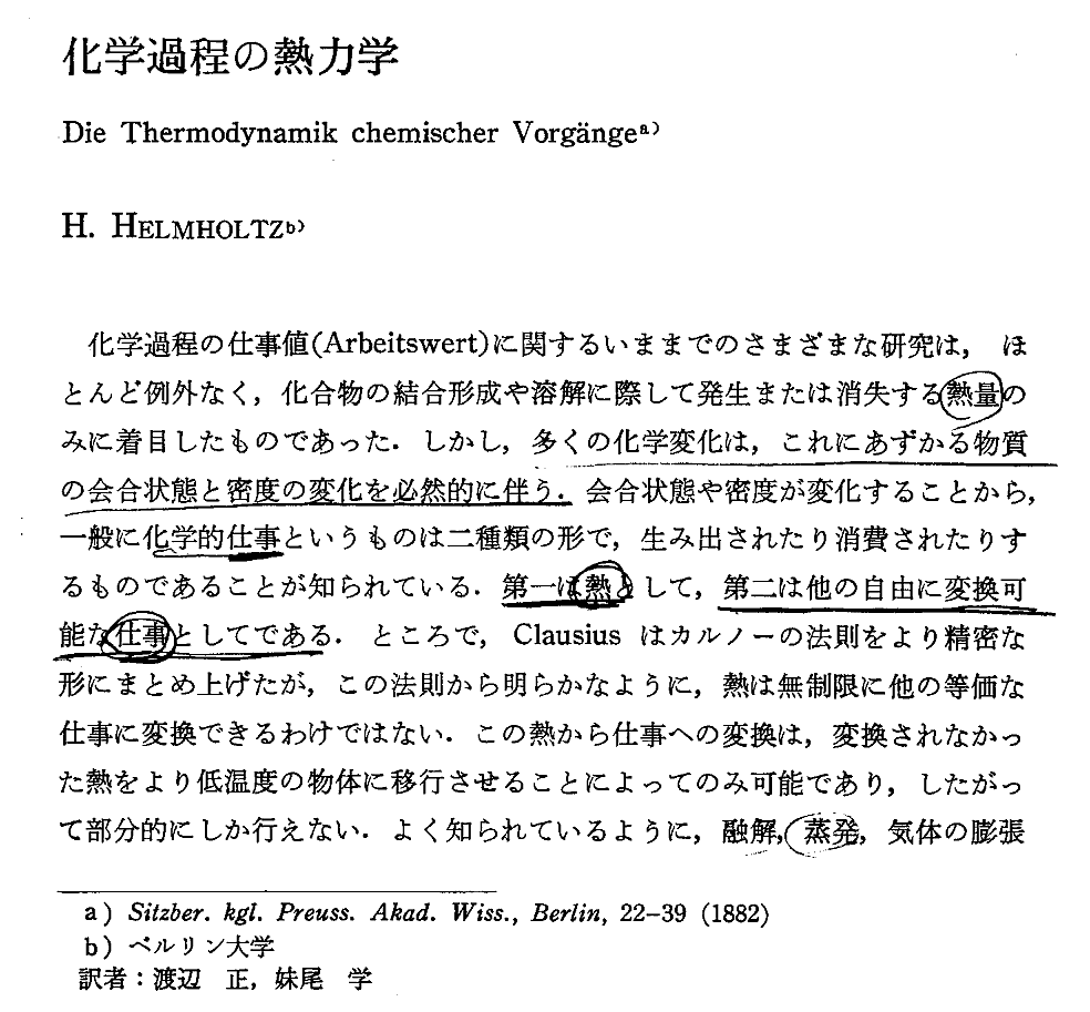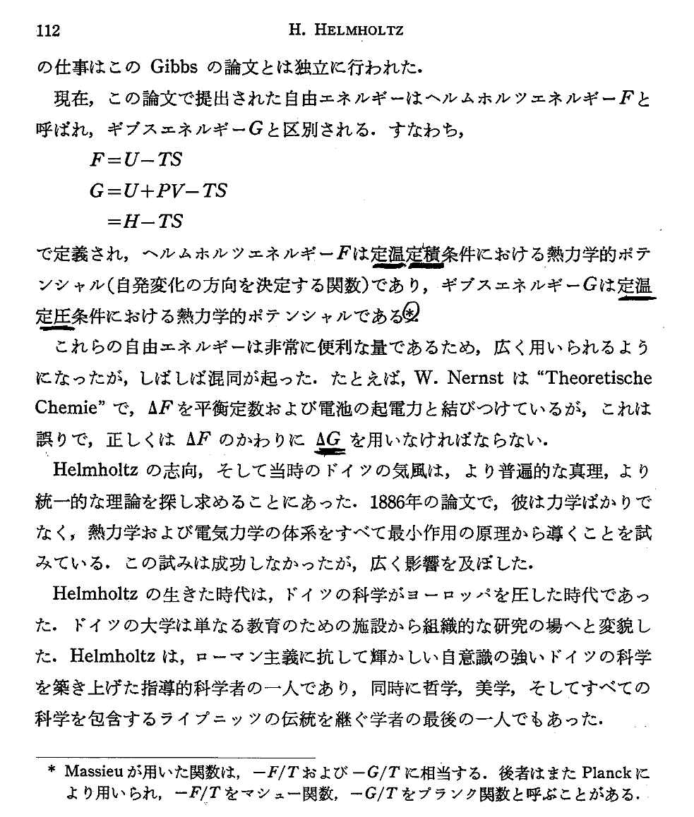 日本化学会編 化学の原点[第U期] 「3 化学熱力学」学会出版センター(1984年)p91〜112 より引用