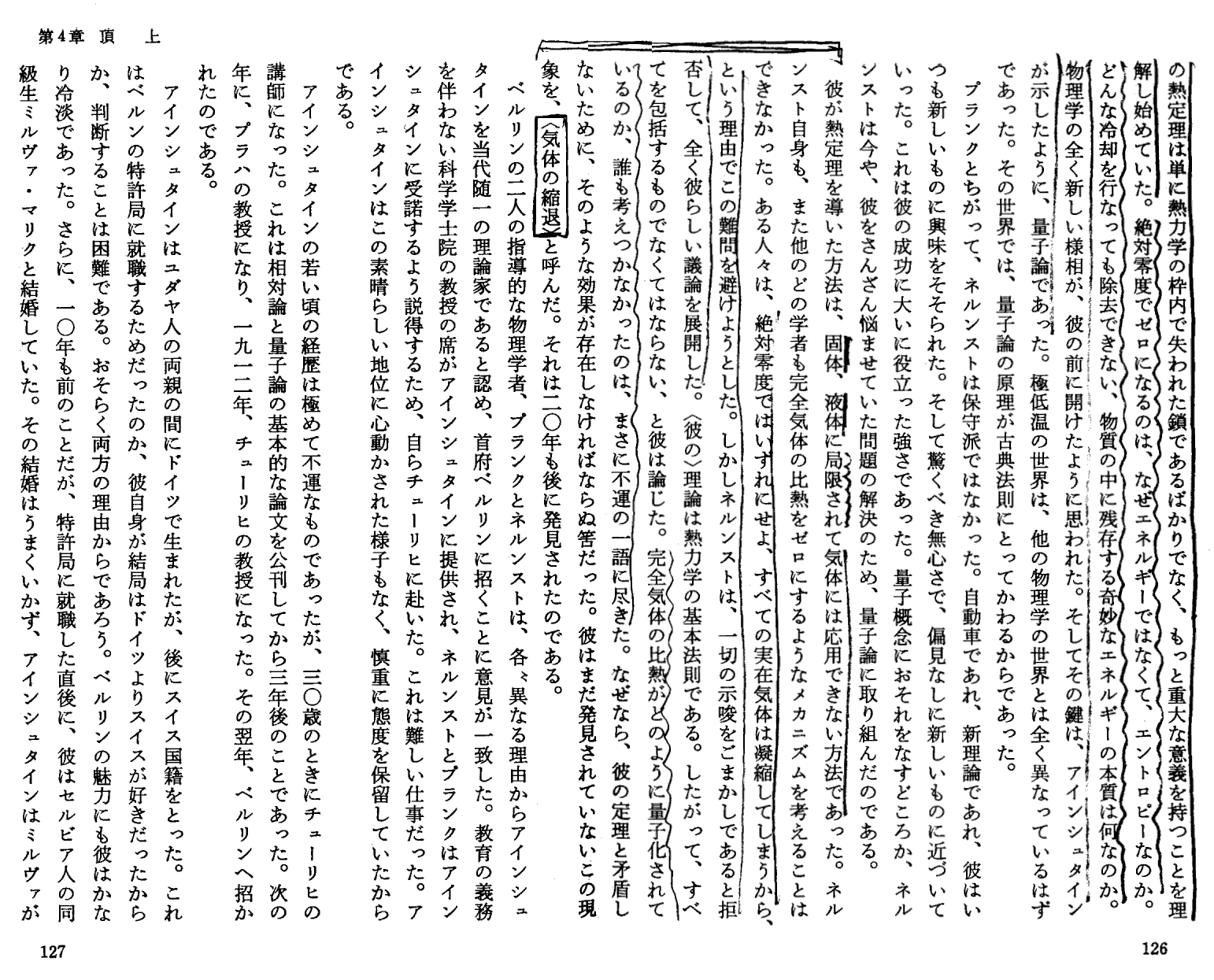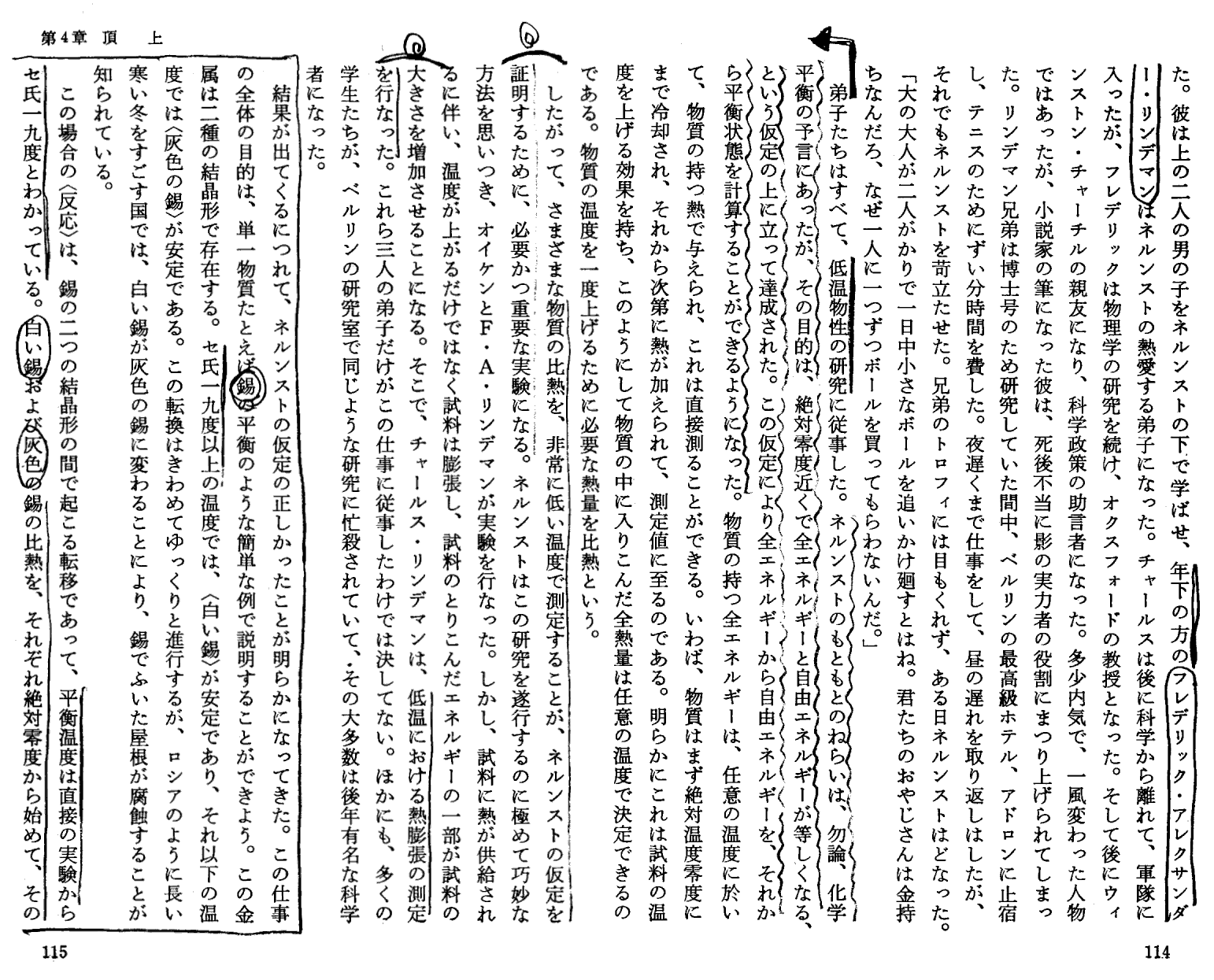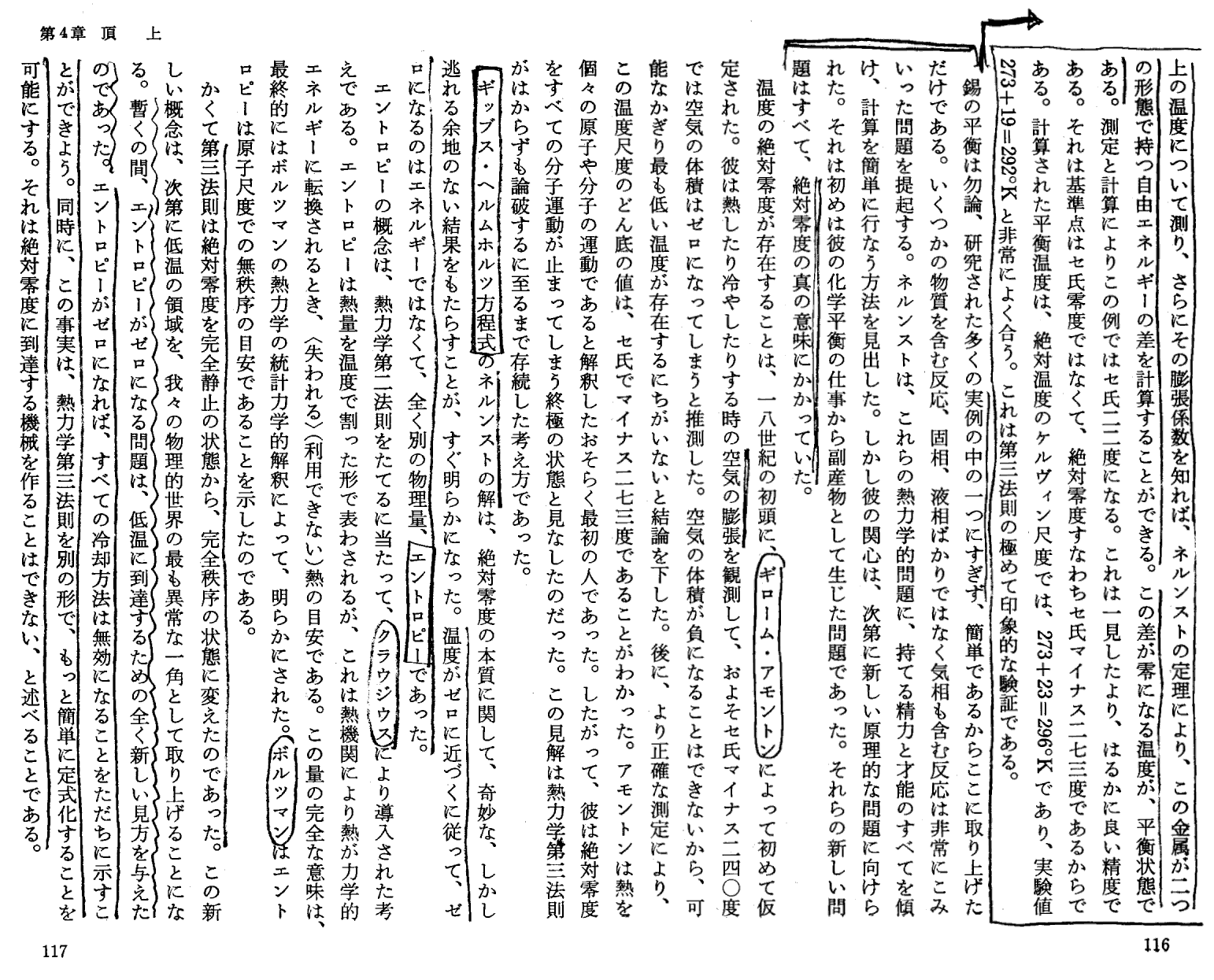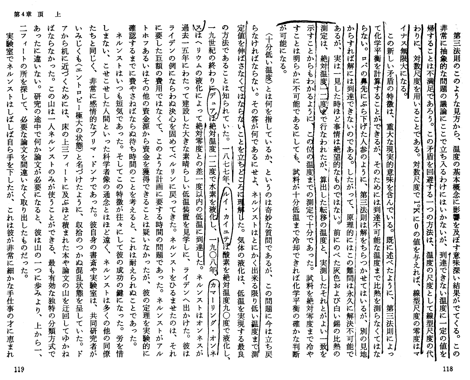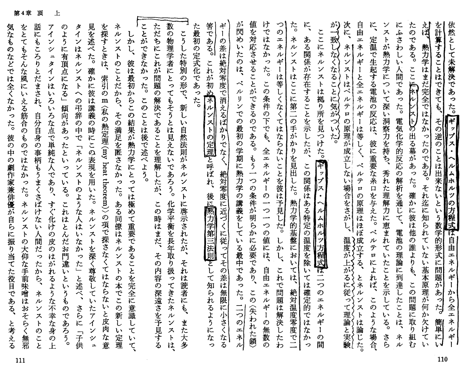 K.メンデルスゾーン著「ネルンストの世界−ドイツ科学の興亡−」岩波書店(1976年刊)第4章p104〜130 の引用です。ネルンストの弟子で高名な低温物理学者であるメンデルスゾーンの解説です。注意深く読まれれば、単なる伝記ではなくて、かなり本質的に書かれていることが解ります。特に“絶対零度でゼロになるのはエネルギーでは無くてエントロピーである”は至言です。