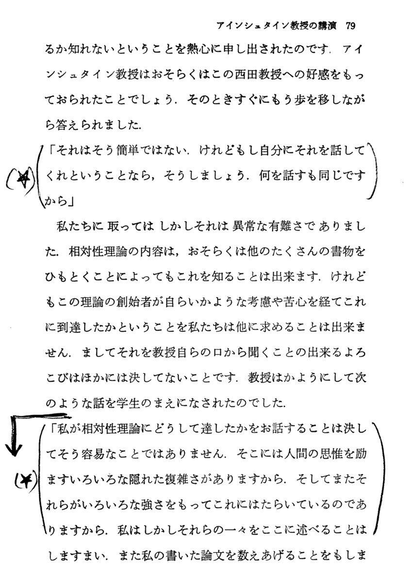 この講演もそうしたものの一つです。しかし、そういった時にしばしば述懐(この講演でもp79の★印)しているように、それに答えることは彼自身にとって容易ではありませんでした。