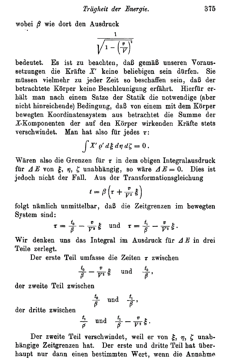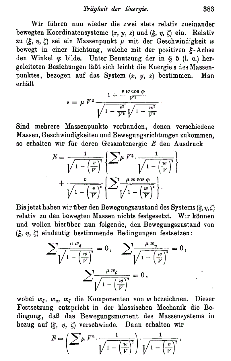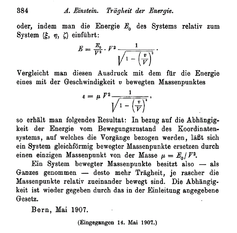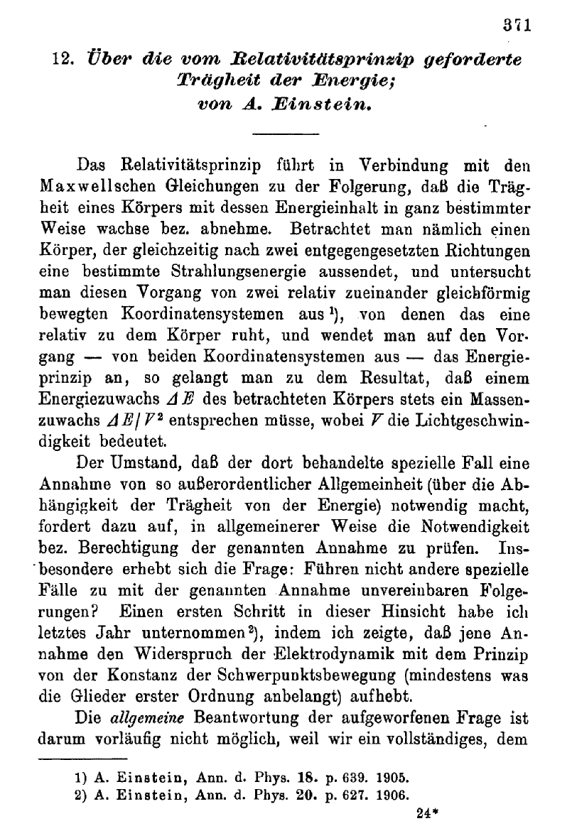 “U¨ber die vom Relativita¨tsprinzip geforderte Tra¨gheit der Energie”,