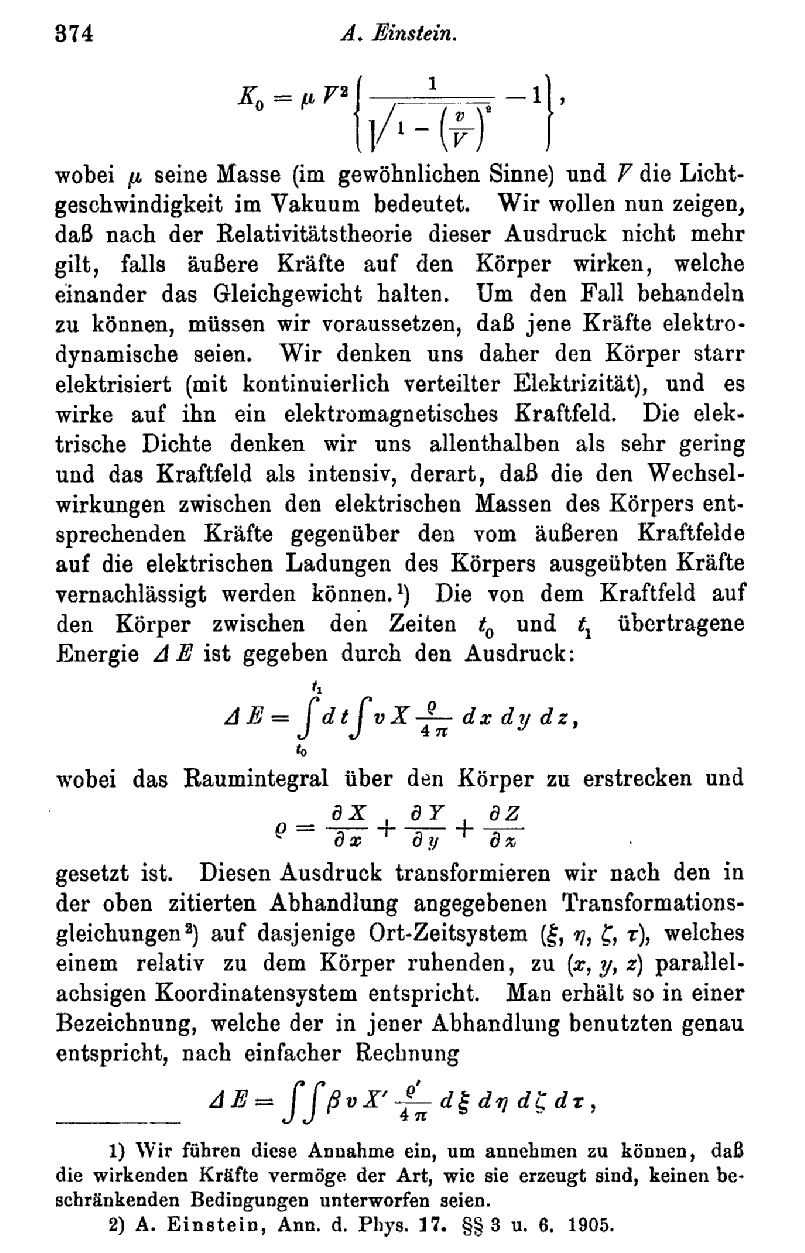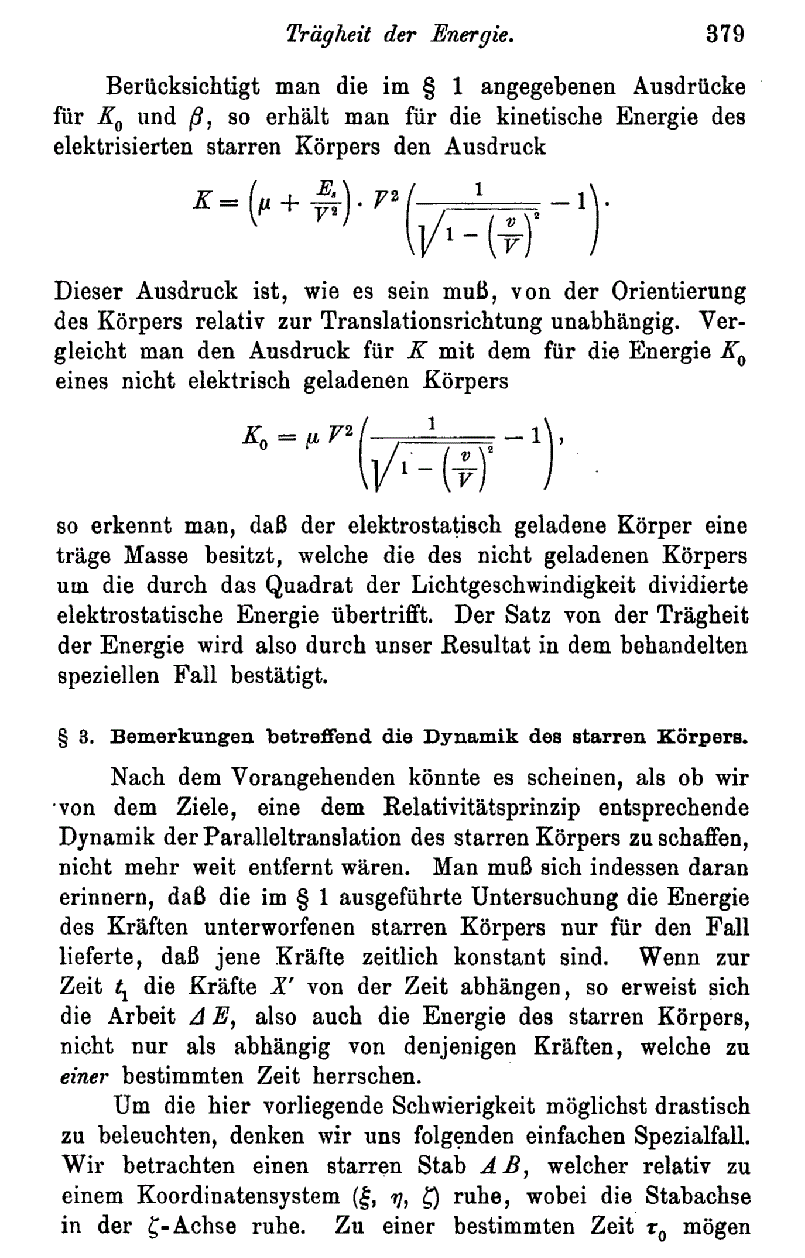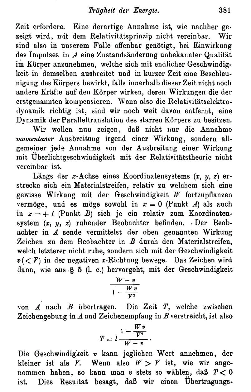 “U¨ber die vom Relativita¨tsprinzip geforderte Tra¨gheit der Energie”,