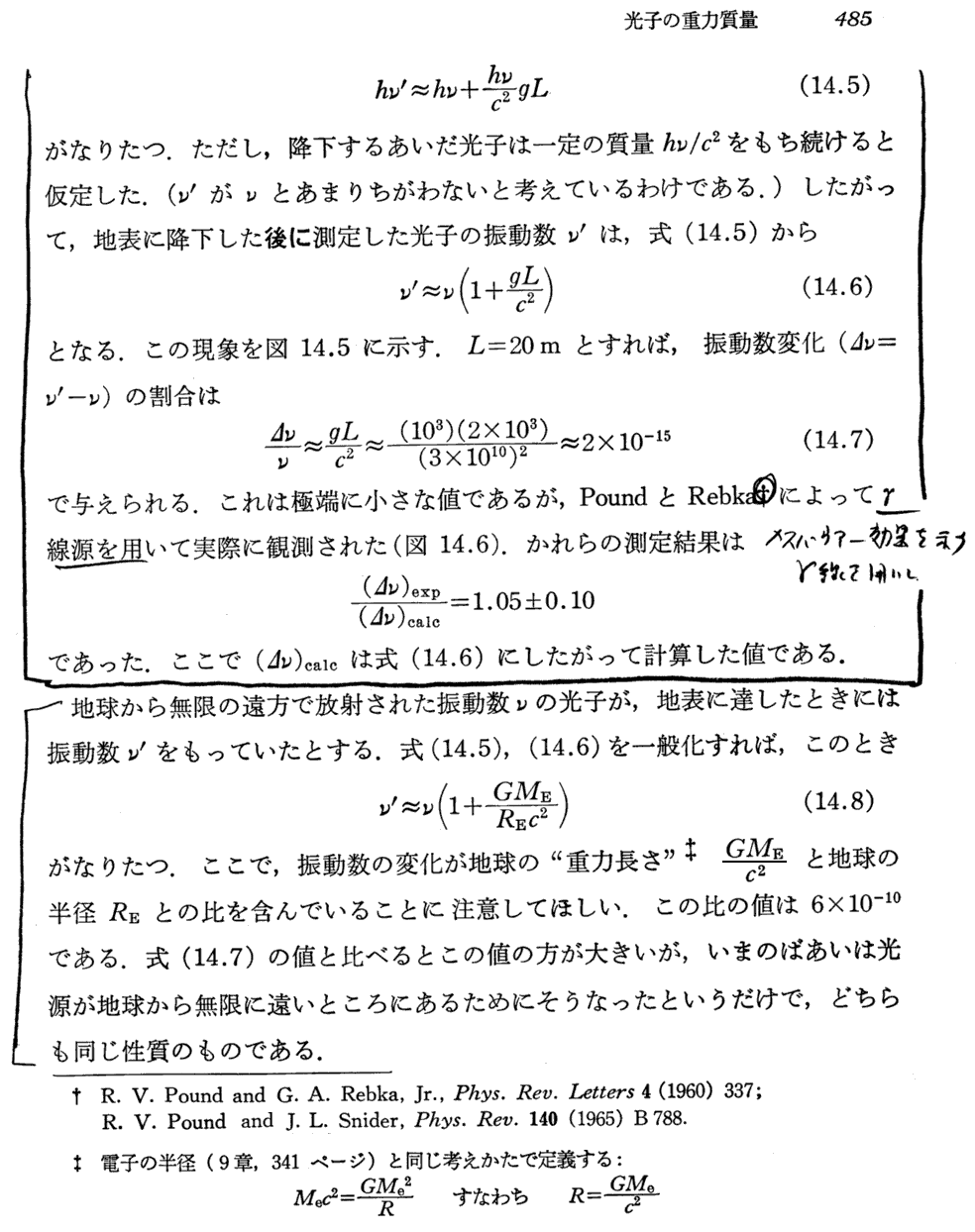 パウンドとレプカ(1960年)、パウンドとスナイダー(1965年)の実験に付いては別稿「一般相対性理論の古典的検証と歪んだ時空」§2-1-2をご覧下さい。