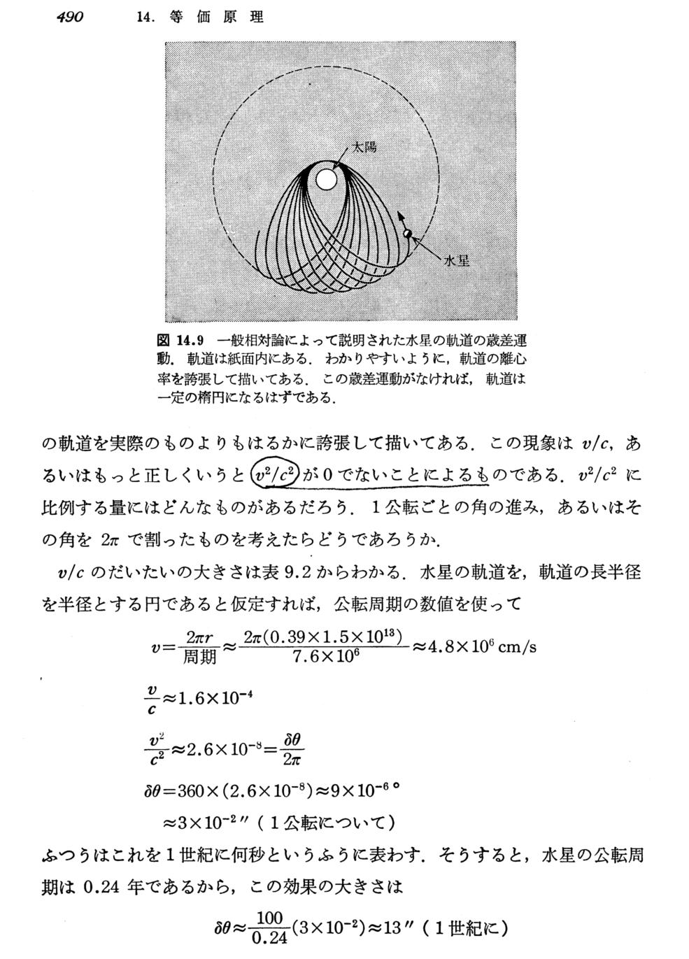 見積計算については別稿§2-3も参照されたし。一般相対性理論に基づく厳密な計算は「テンソル解析学の一般相対性理論への応用」7.(9)1.をご覧下さい。