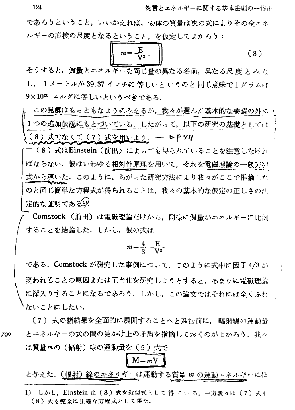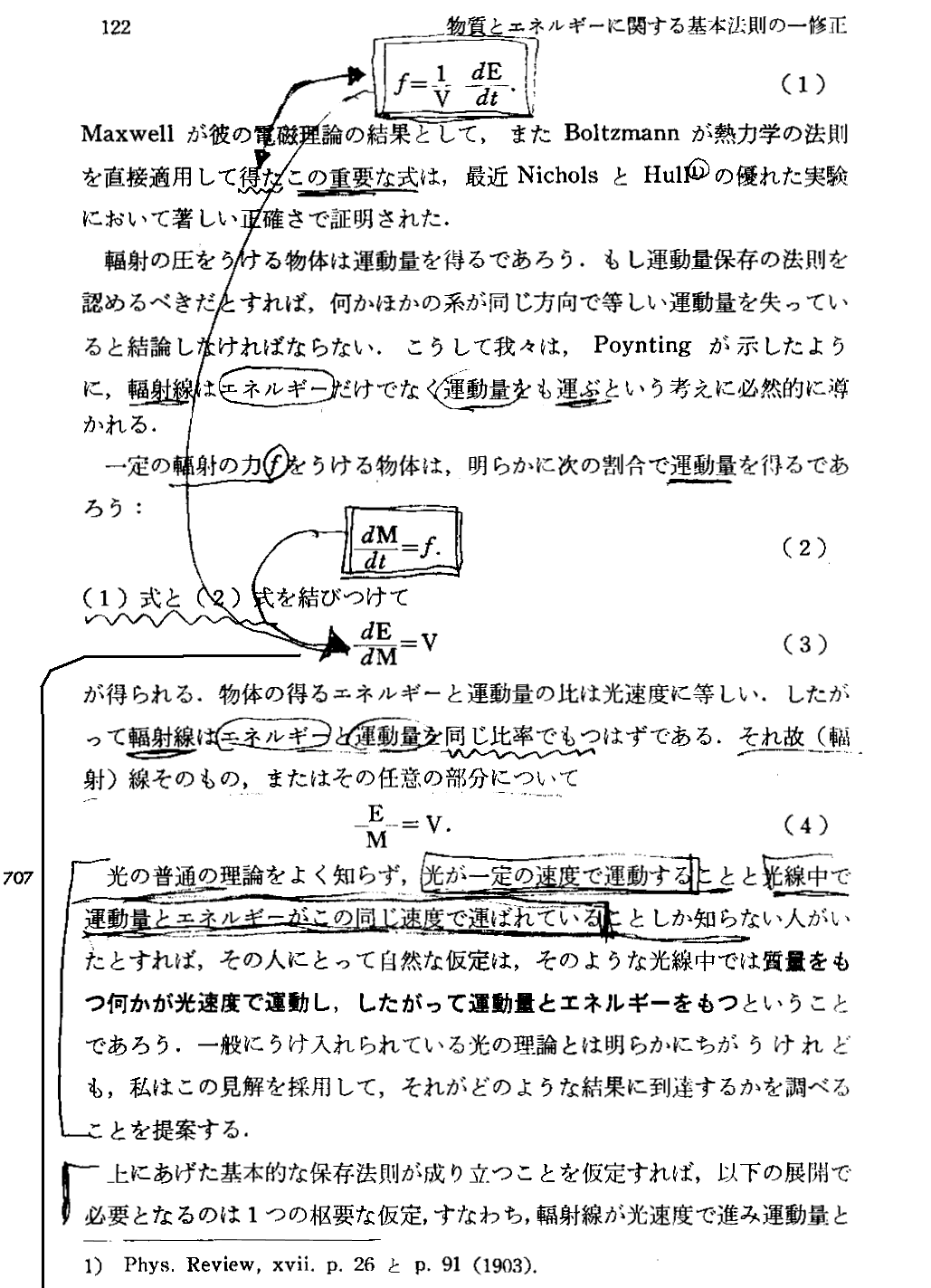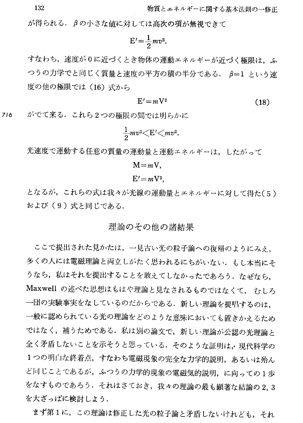この論文は難解ですが、Pauliが明快に解説(別稿「Einsteinの公式 E=mc2 の証明」4.[補足説明2−2])しています。