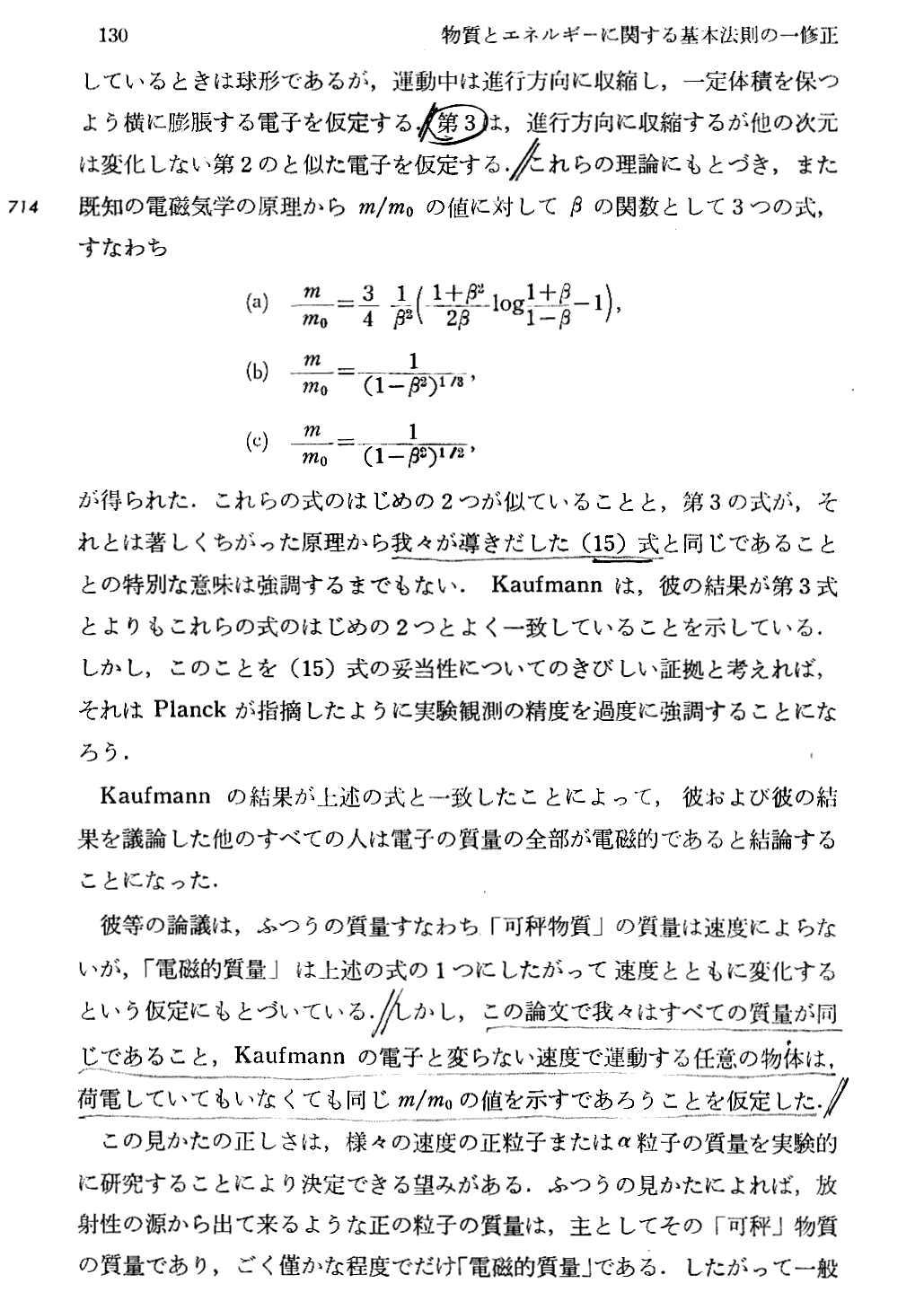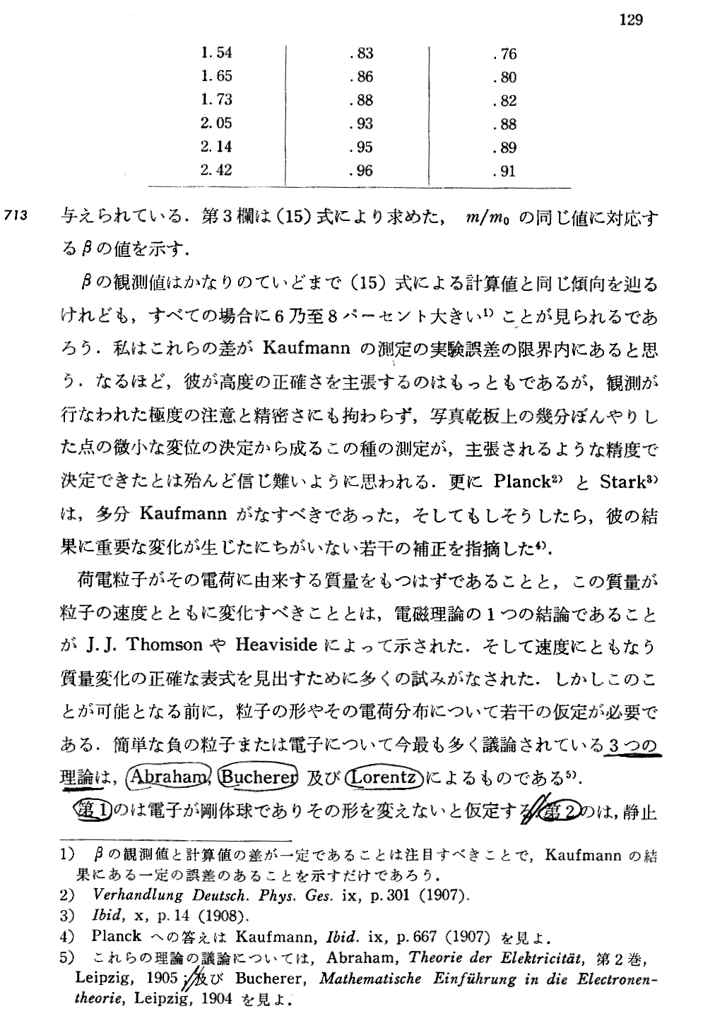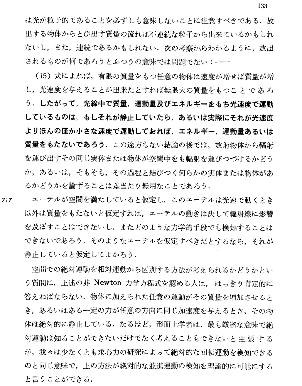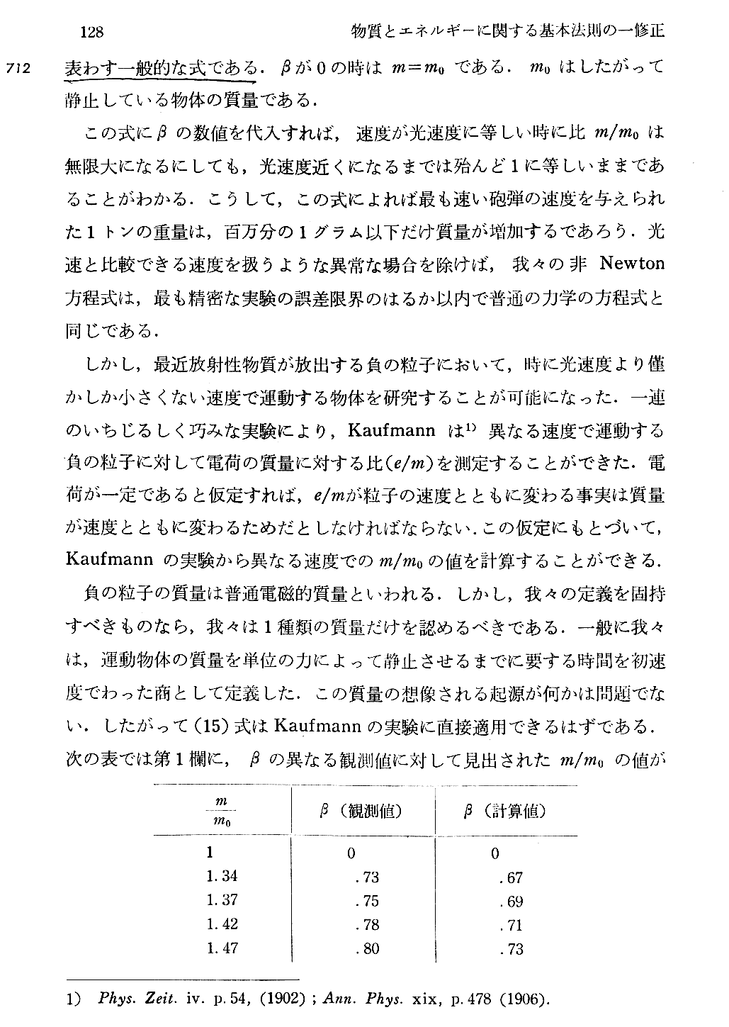 物理学史研究会編「物理学古典論文叢書4 相対論」東海大学出版会(1969年刊)より引用。左欄に記入の数字は原論文のページ数です。