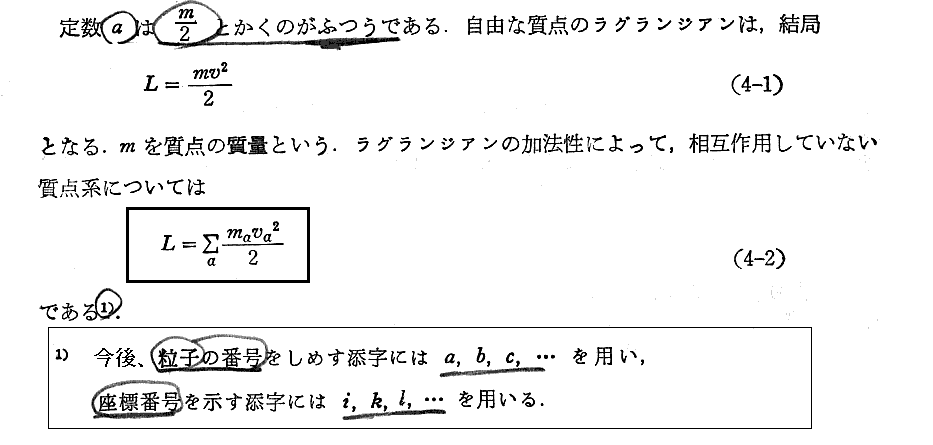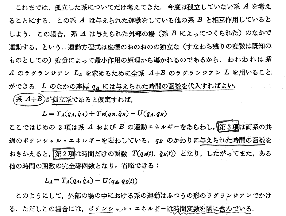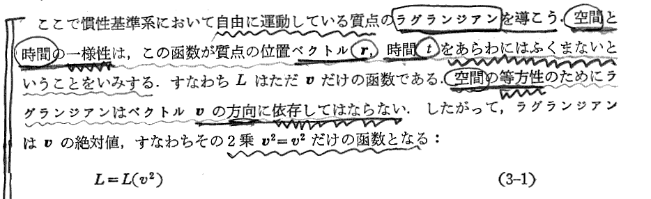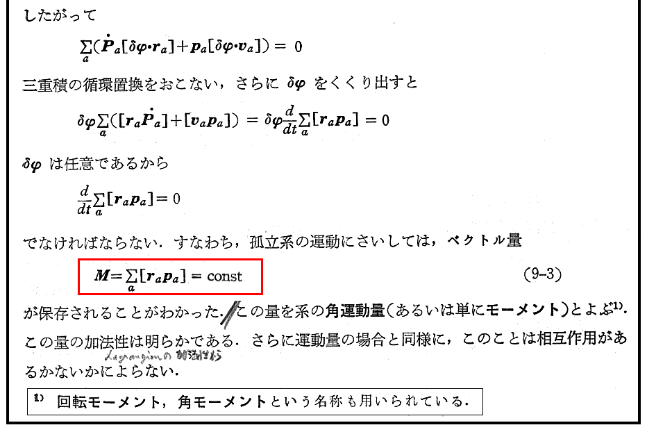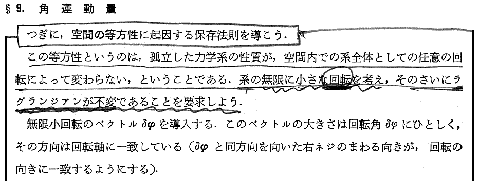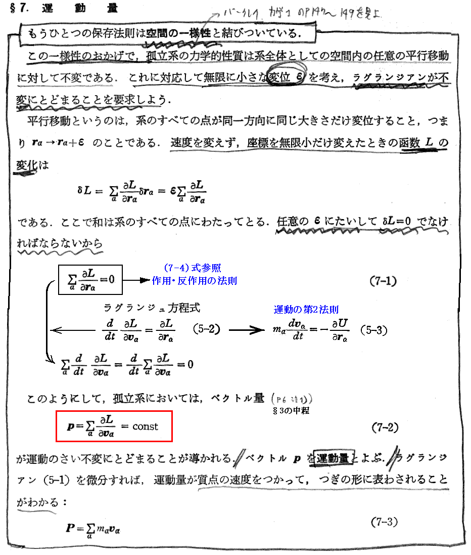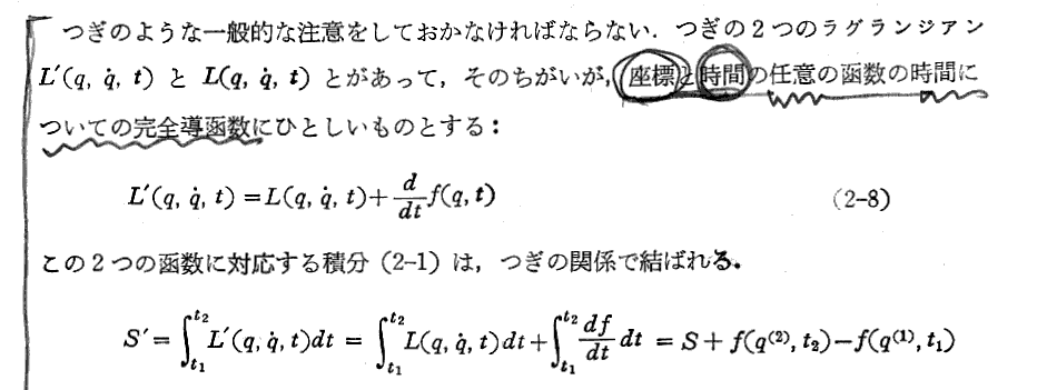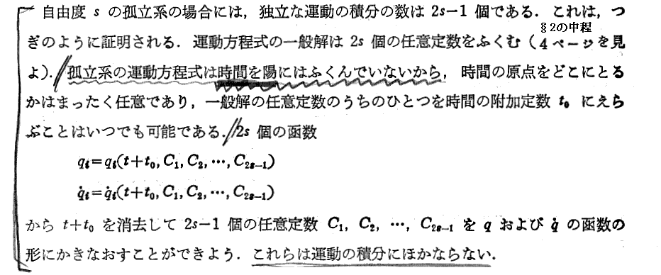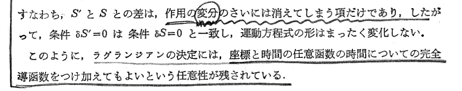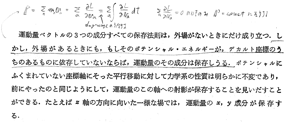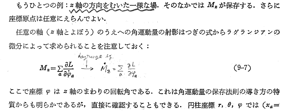 上記の部分は“ネーターの定理”と関係するところです。別ページの補足の書き込みをご覧下さい。