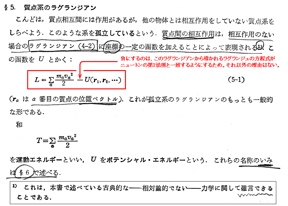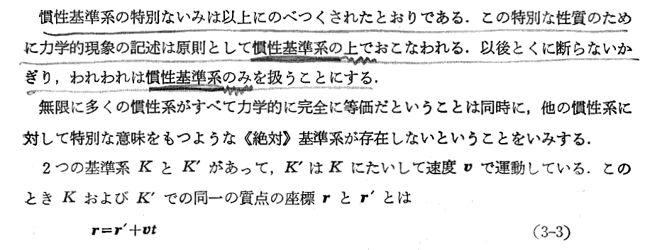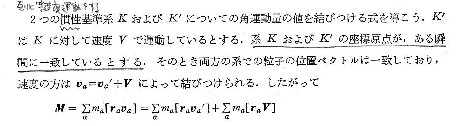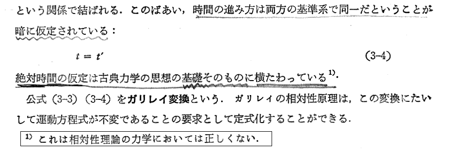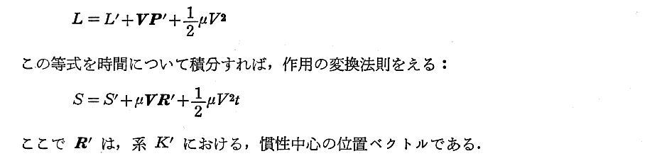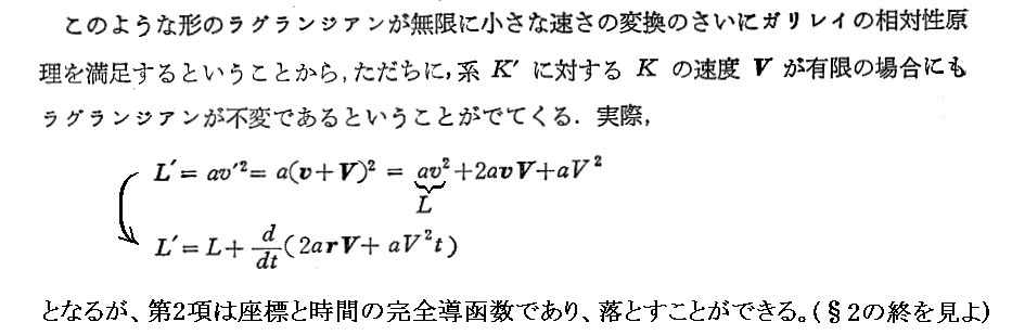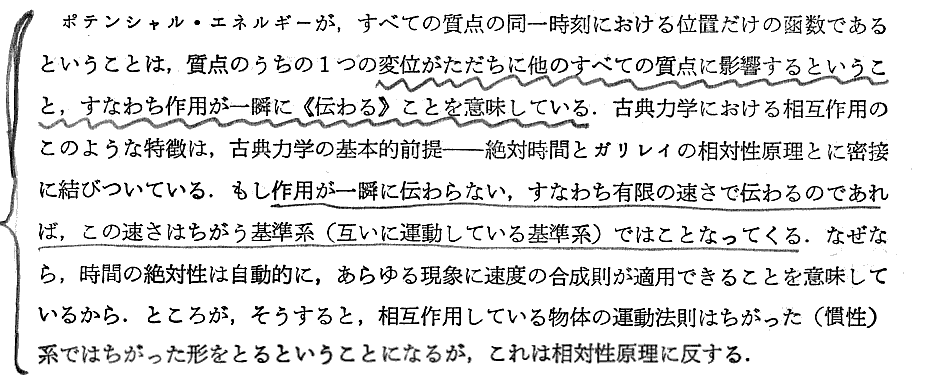 上記注1)はきわめて重要です。別稿「相対論的力学」2.[補足説明6−2]で説明したように、相対性理論では質点間の相互作用を表すのに座標の一定の函数を加えることによって表現することはできない。