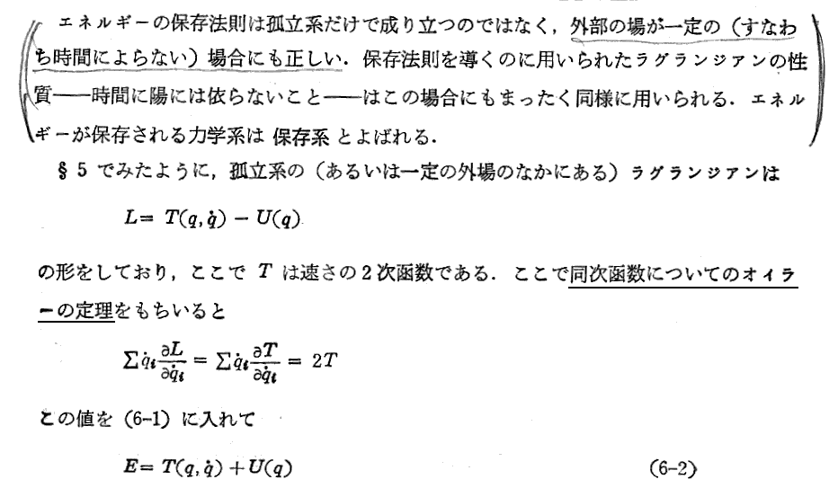 (6-1)式の左辺がハミルトニアン(エネルギー)となることについては、別稿「ルジャンドル変換とは何か」5.をご覧下さい。