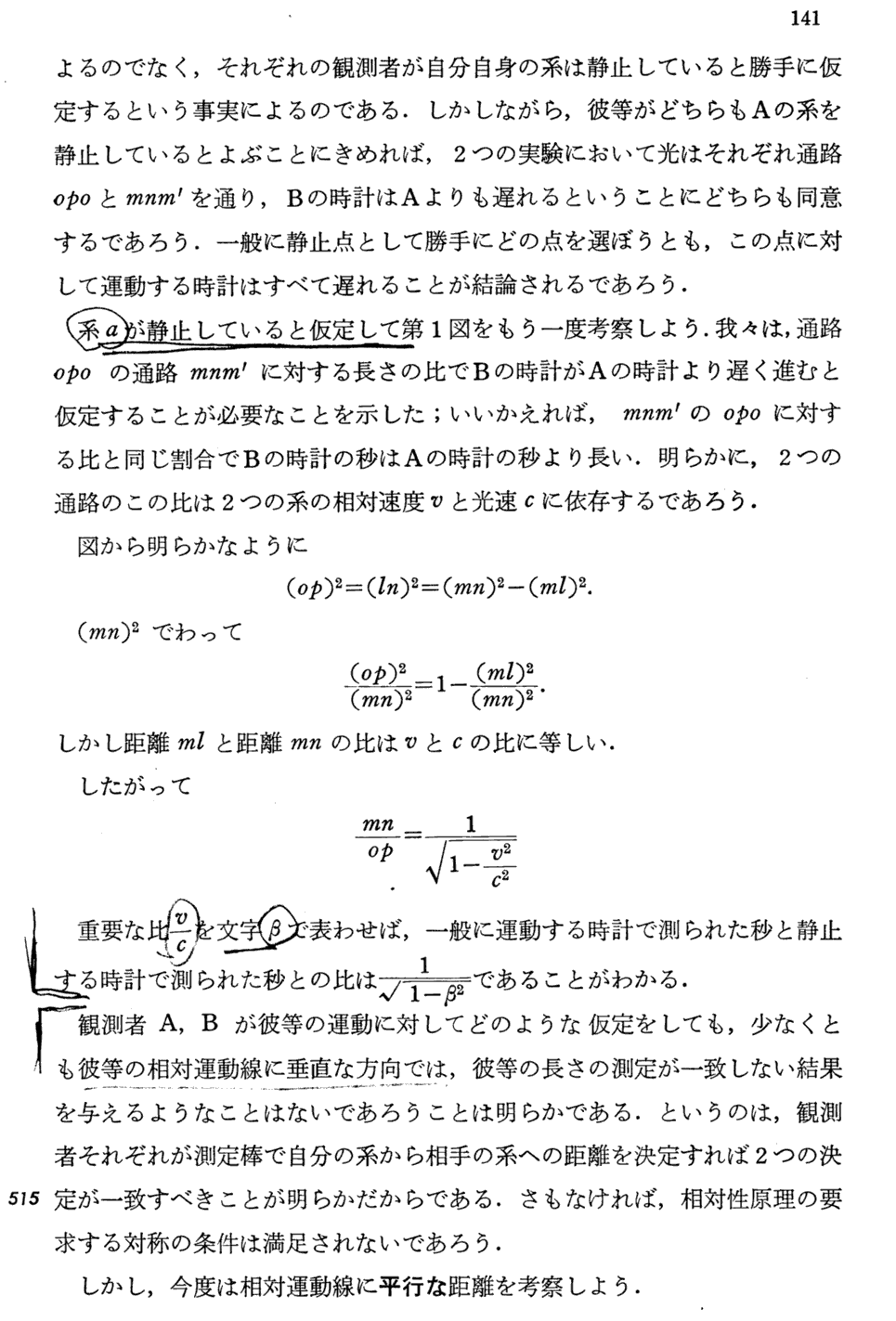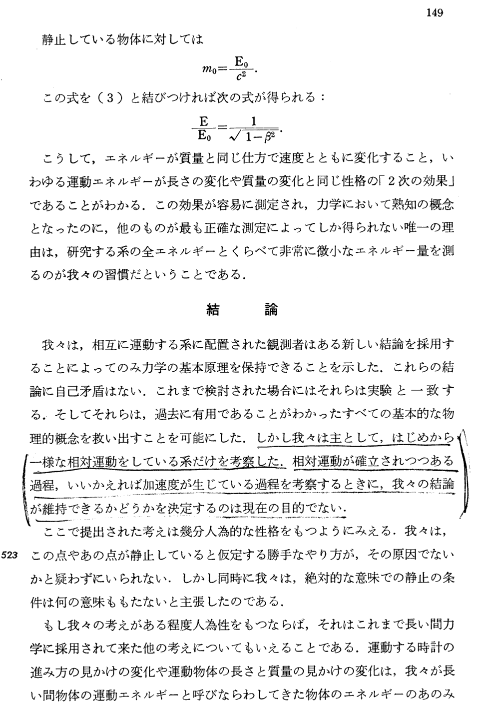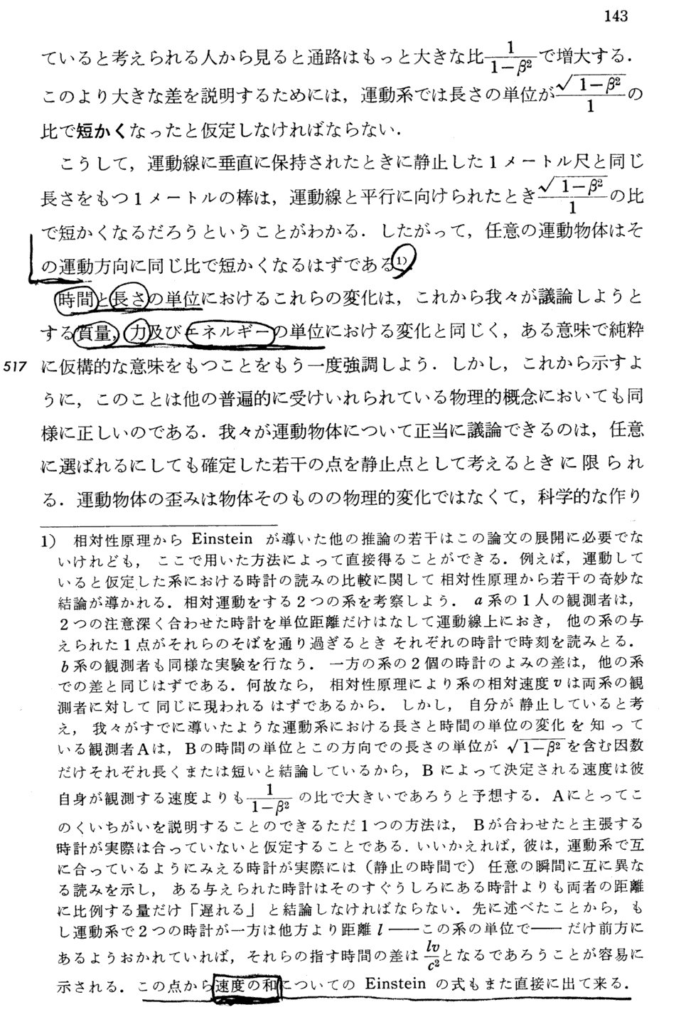 物理学史研究会編「物理学古典論文叢書4 相対論」東海大学出版会(1969年刊)より引用。左欄に記入の数字は原論文のページ数です。