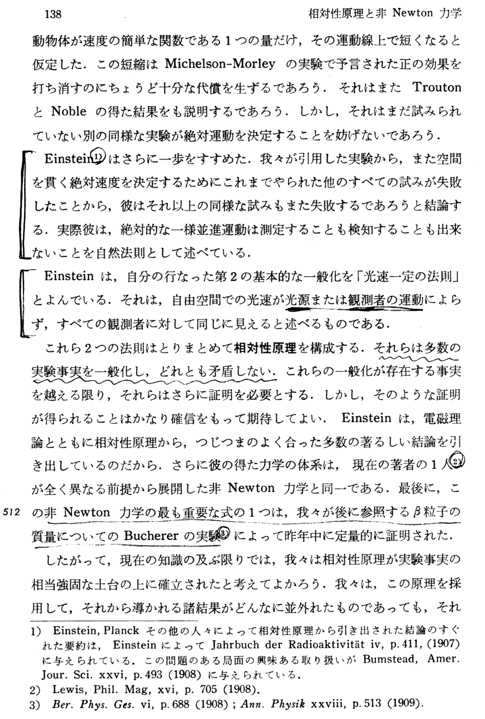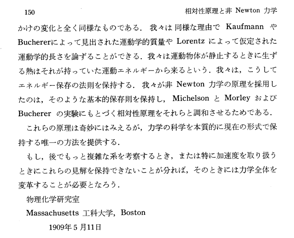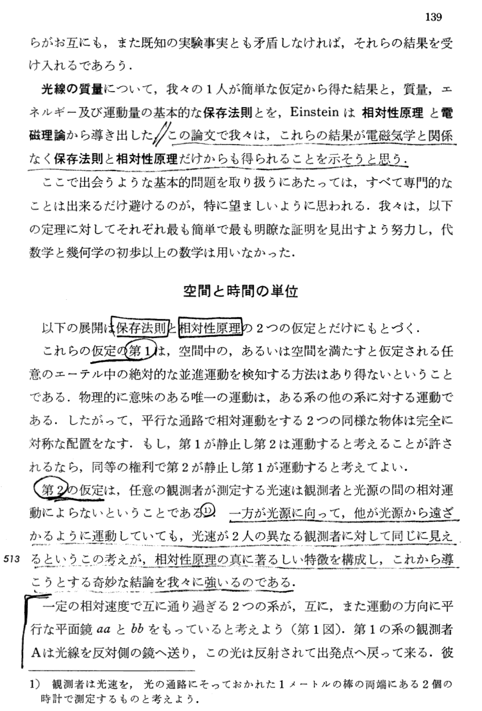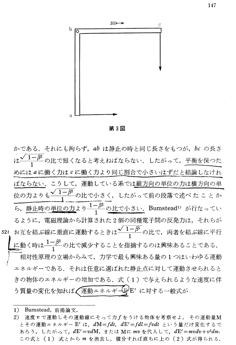 物理学史研究会編「物理学古典論文叢書4 相対論」東海大学出版会(1969年刊)より引用。左欄に記入の数字は原論文のページ数です。