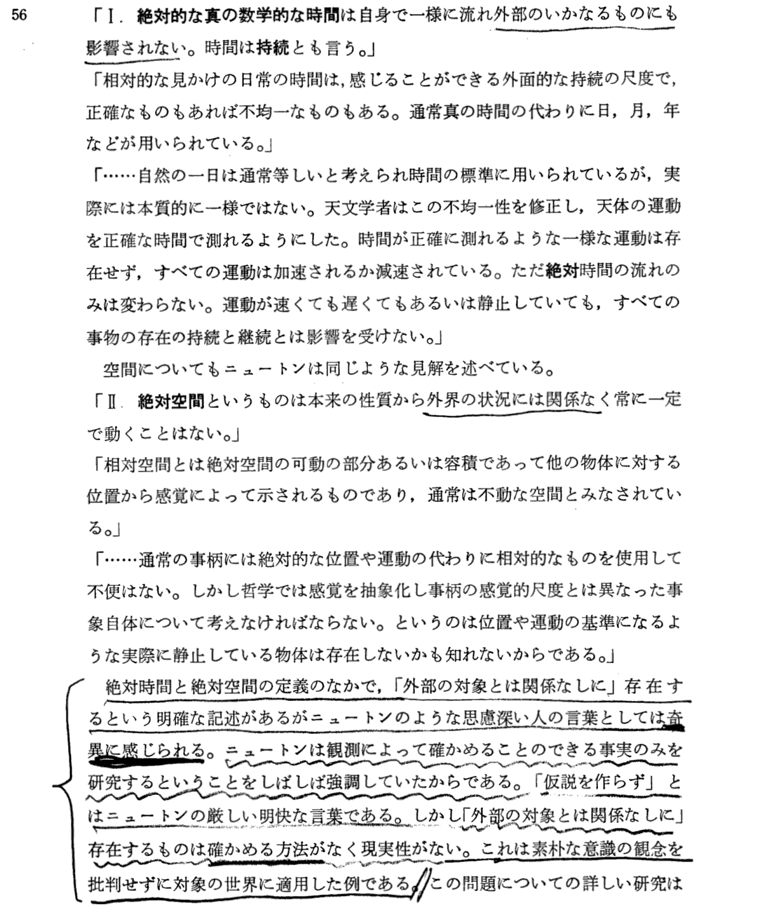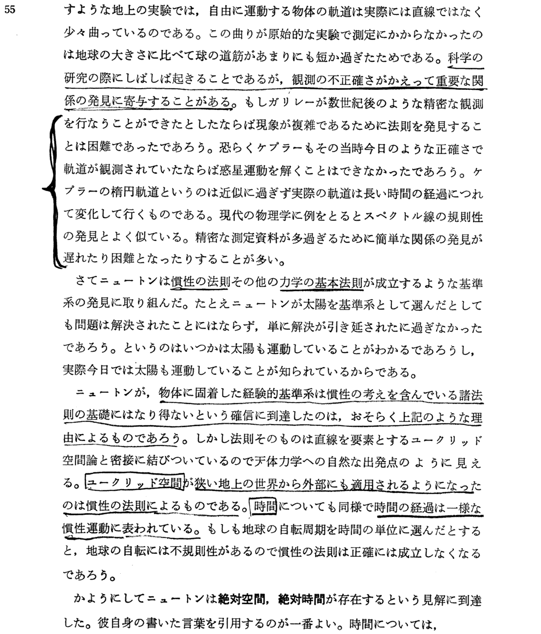 Max Born著「アインシュタインの相対性理論」講談社(1971年刊)第V章“ニュートンの宇宙体系”§1〜11(p54〜83)を引用。左欄に記入の数字は、引用した本のページNo.です。文中引用の便利のため記しています。