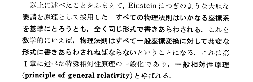 ここはアインシュシタインが最も苦しんだ所です。彼は長い間、ここのところを明確に論じる数学的方法を求めてもがき苦しんだのですから。一般相対性理論の数学で最も難しいところです。