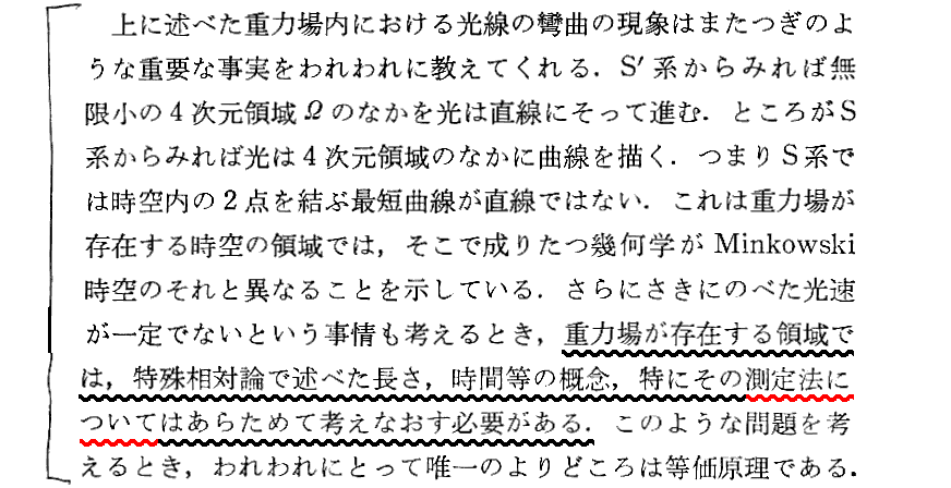 内山先生のここの説明は、極めて難解なEinsteinのグラスゴー講演(1933年)p272の赤線□で囲った説明をもう少し解りやすくしたものです。