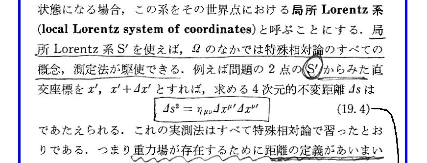 いずれにしても、そのような事ができるのは、最初に出てきたMinkowski空間がリーマン空間の擬ユークリッド的“接空間”だからです。ここが一番解りにくい所ですが、別稿4.(1)〜(3)の特に《第5に重要な事》を参照されたし。