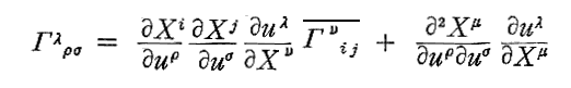 これはクリストッフェル記号の座標変換式そのものを表しています。別稿「微分幾何学」3.(3)1.で求めた式