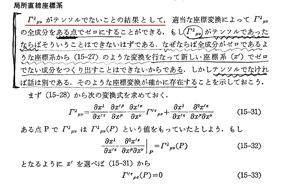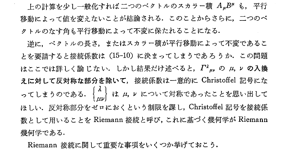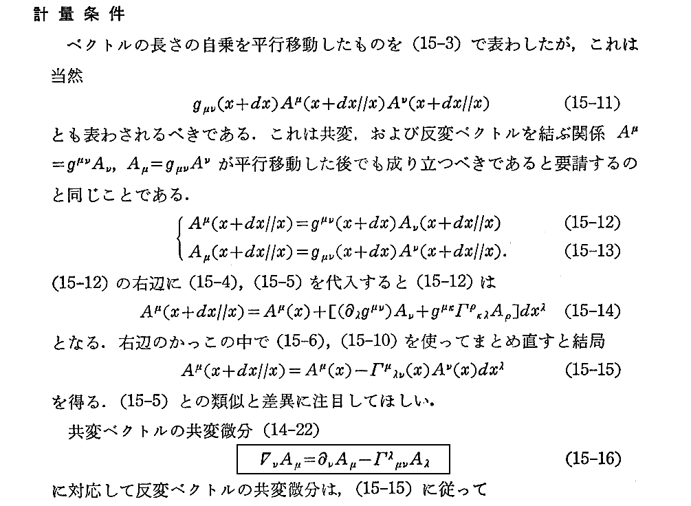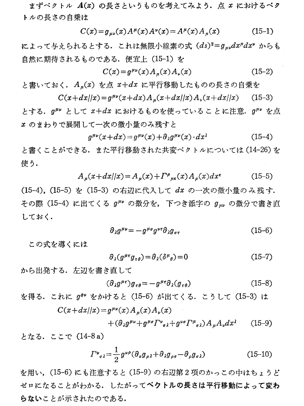 藤井保憲著「時空と重力」産業図書(1979年刊)より引用。リーマン曲率テンソルの定義は別稿「テンソル解析学(絶対微分学)」6.(5)1.[補足説明]の(A)の場合です。