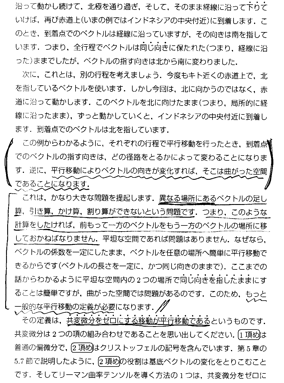 平行移動については別稿「平行移動とリーマン幾何学」をご覧下さい。さらに別稿「微分幾何学3.(曲面の幾何学)」3.(8)、あるいは「テンソル解析学(絶対微分学)」6.(5)2.などもご覧下さい。