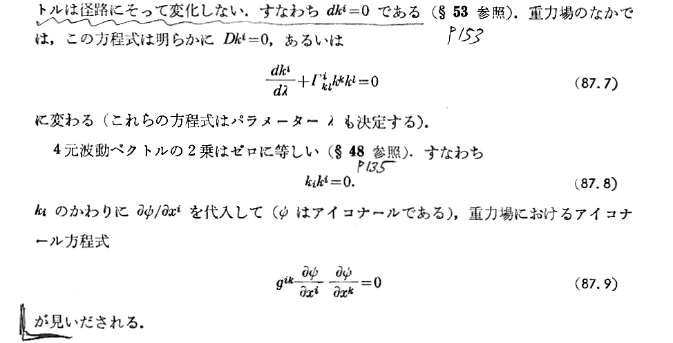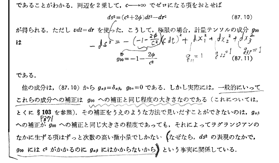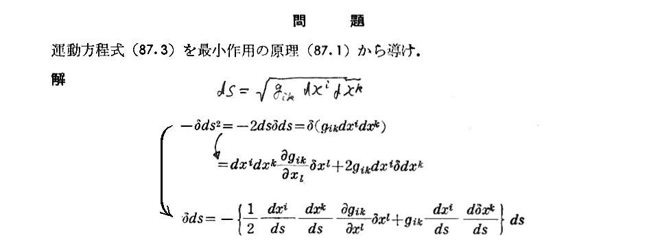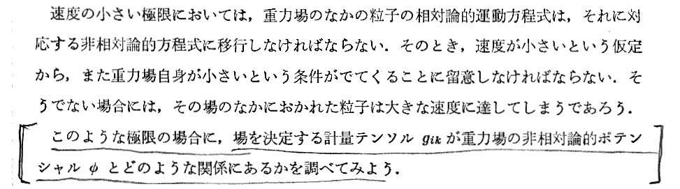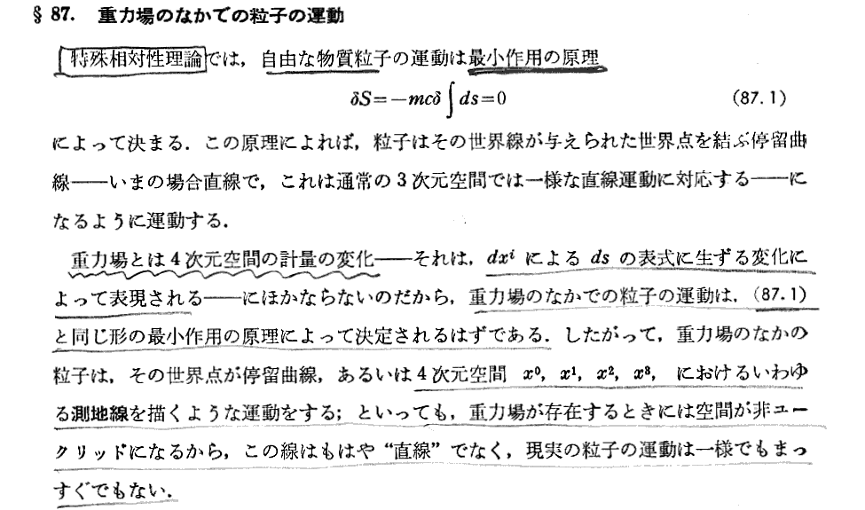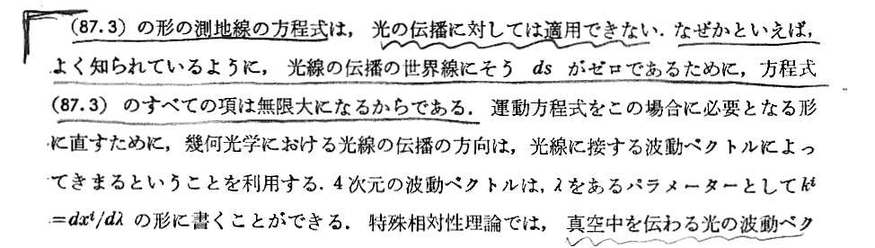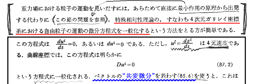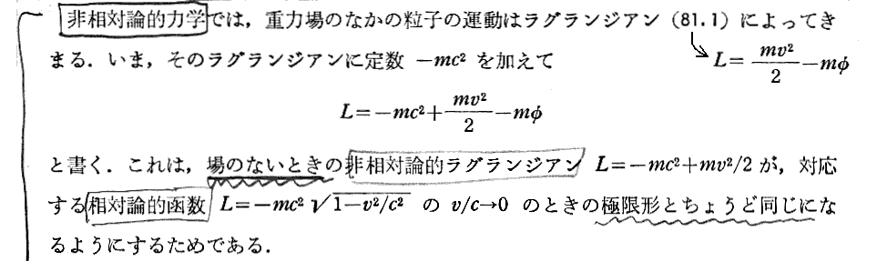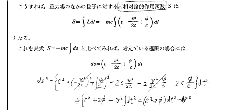 ここでは、ランダウ・リフシュツ著「場の古典論」東京書籍(1964刊)10章§87“重力場のなかでの粒子の運動”をそのまま引用しています。別稿「一般相対性原理と等価原理」5.(4)の説明を補足するものとしてお読み下さい。