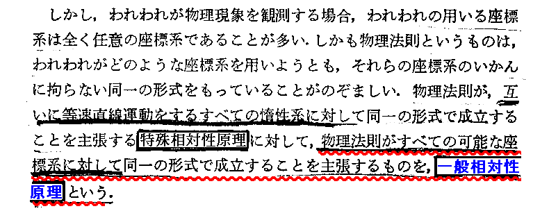 青波線部に関しては別稿「双子のバラドックスと一般相対性理論」5.(4)を参照。赤波線の部に関してはランダウ、リフシュツ「場の古典論」§8をご覧下さい。