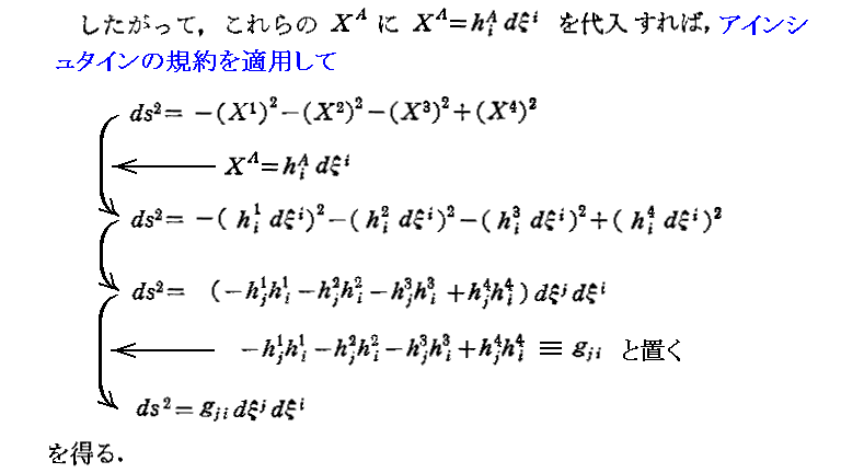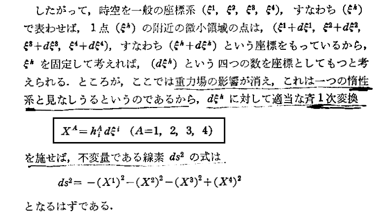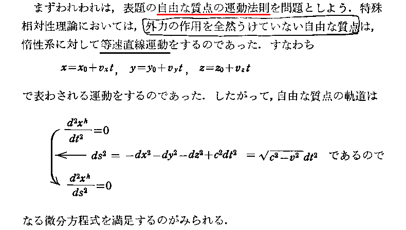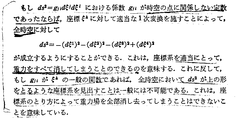 矢野健太郎著「近代数学新書 相対性理論」至文堂(1963年刊)の第5章p108〜118から引用です。
