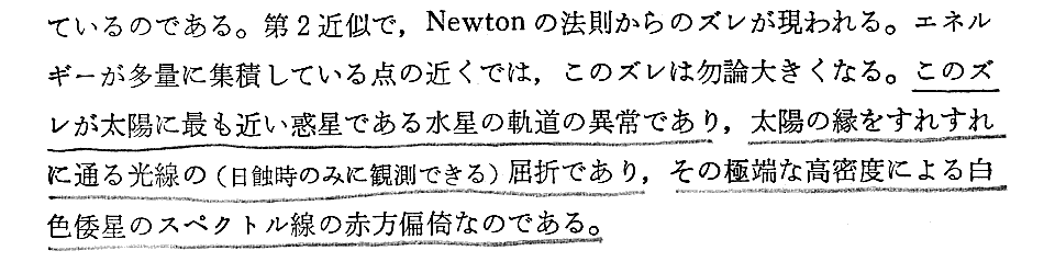 だから、1919年5月29日の皆既日食で期待されていたのはこの二倍の効果が観測できるかどうかだったのです。この観測遠征に付いては別稿で引用するチャンドラセカールの解説が秀逸です。
