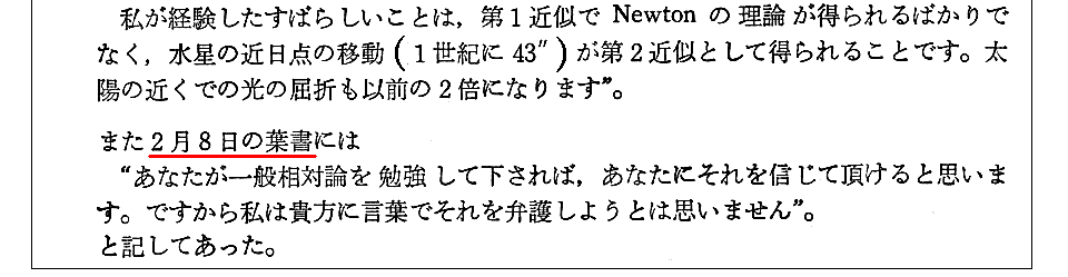 おそらくSommerfeldは、アインシュタイン方程式(7)式を導くことを省略した後ろめたさから、これら二つの書簡を紹介することでお茶を濁したのでしょう。そこの本質的なところを説明できていないことは彼にとって残念な事だったと思います。