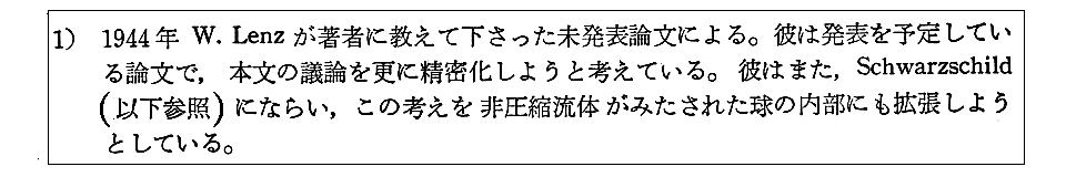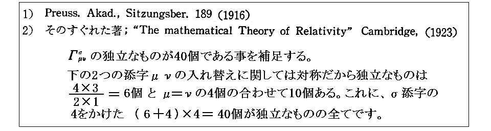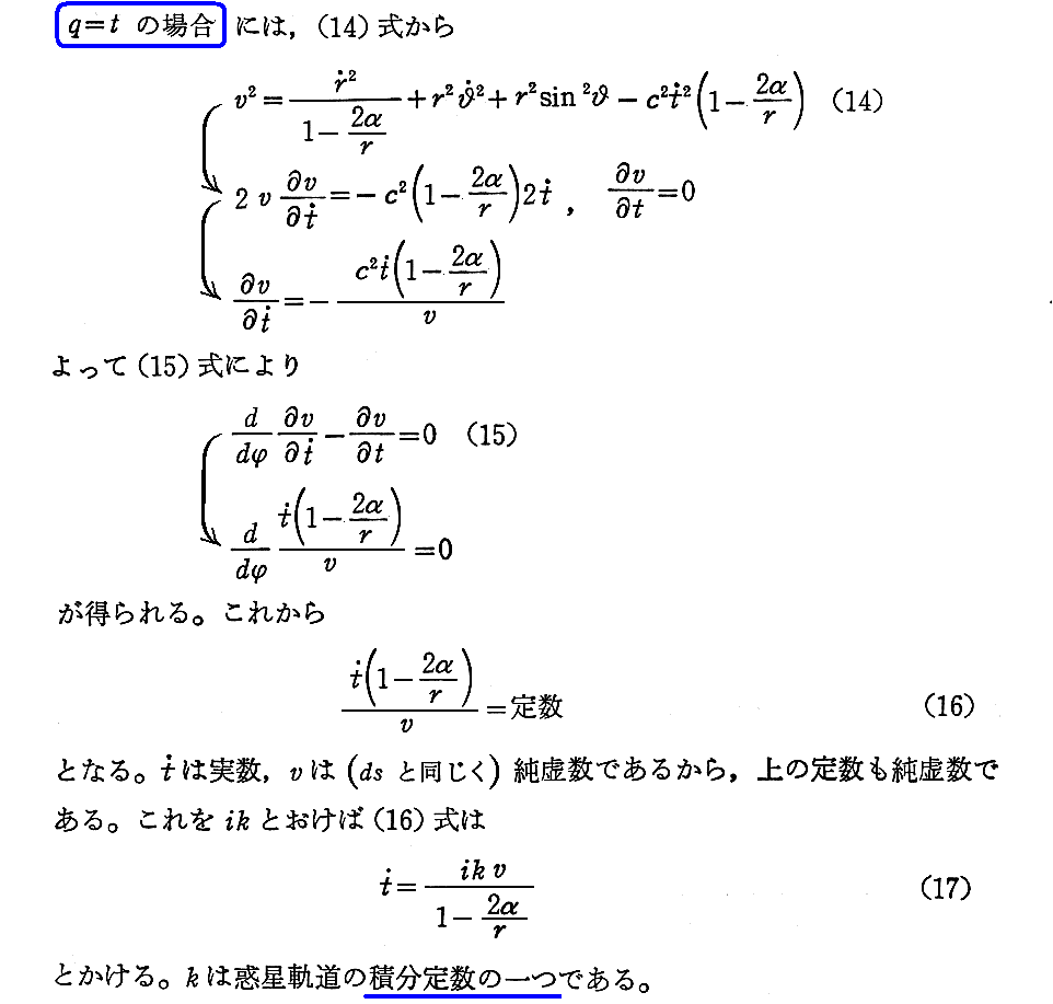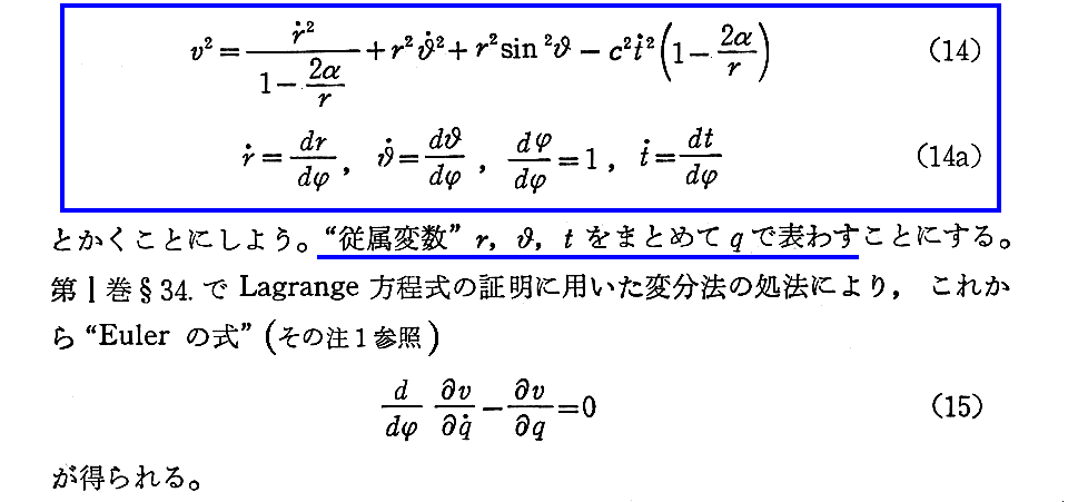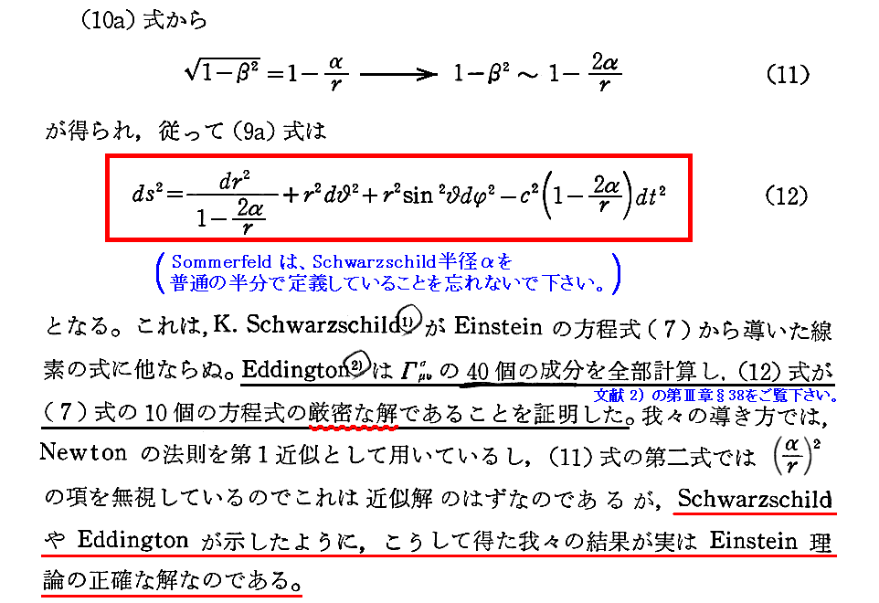 注1)のSchwarzschild(1916年)の二論文のオリジナル版も英訳版もpdfファイルとして無料ダウンロードできるサイトがネット上にありますが、Schwarzschildのオリジナルな解き方は注2)のEddingtonの著書とほぼ同じようですから、注2)の文献をお読みになるのが良いと思います。多くの解説本で紹介されているものはEddingtonの著書の引用の様です。別稿で紹介しましたが、この著書を、S.ChandrasekharやJ.Jeansも高く評価しています。