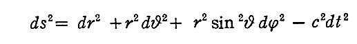 両者の異なっている所は、dr2の係数が 1/(1−2α/r) だけ、c2dt2の係数が (1−2α/r) だけ違うところです。これが、次段落で説明する様々な現象を生み出します。