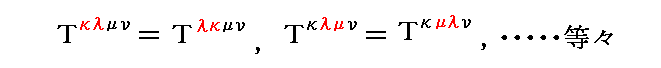 テンソルTκλμνにおいて、任意の二つの添字を交換しても成分値が等しいとき、つまり