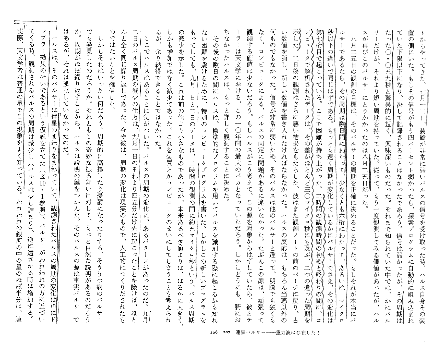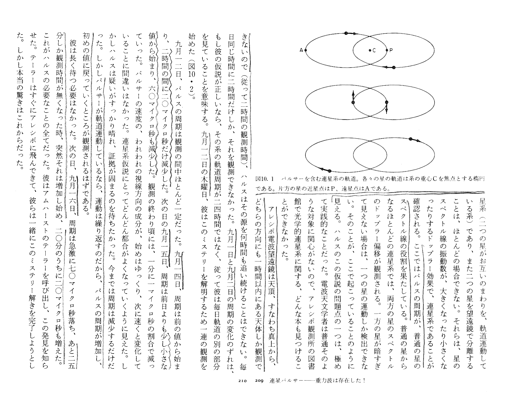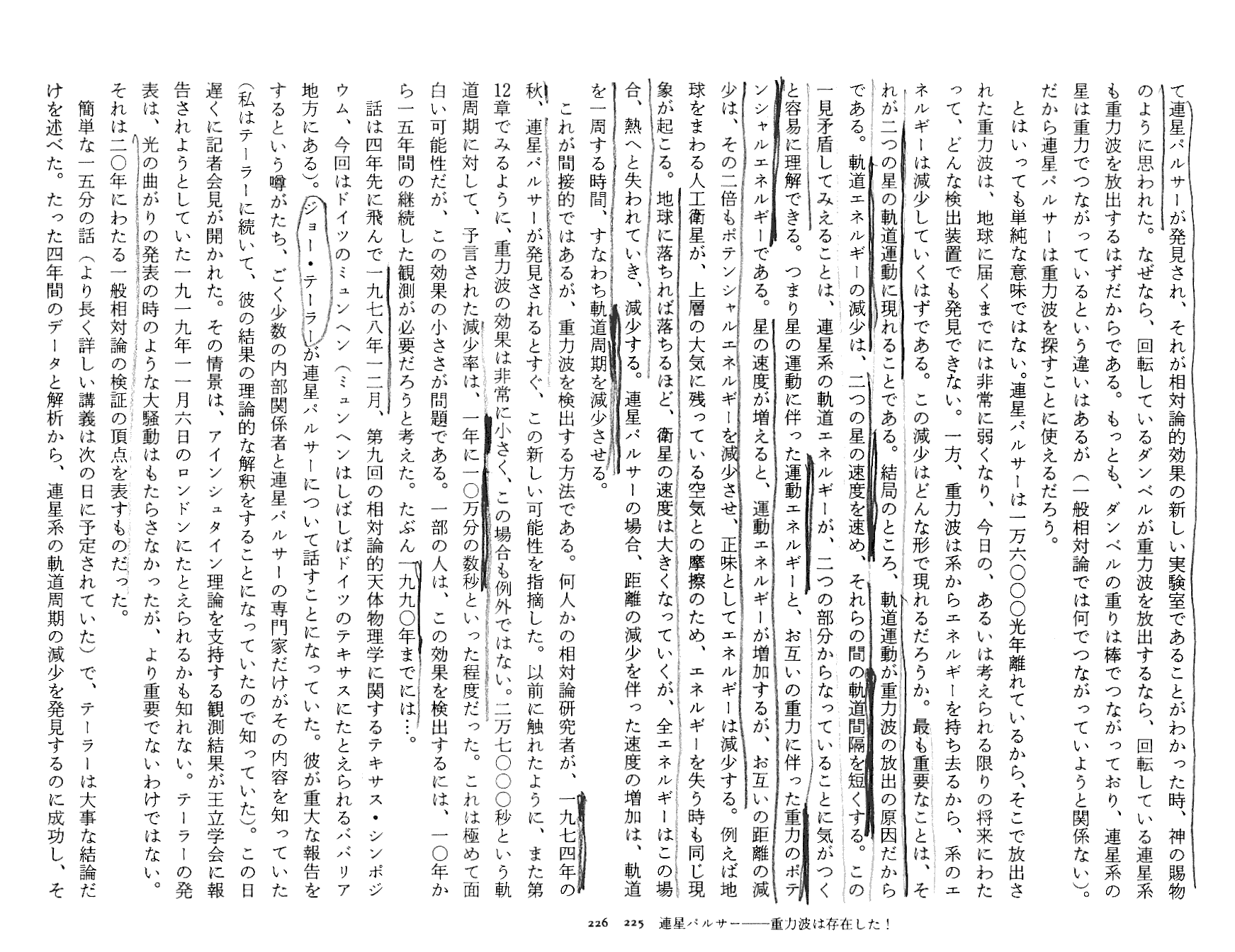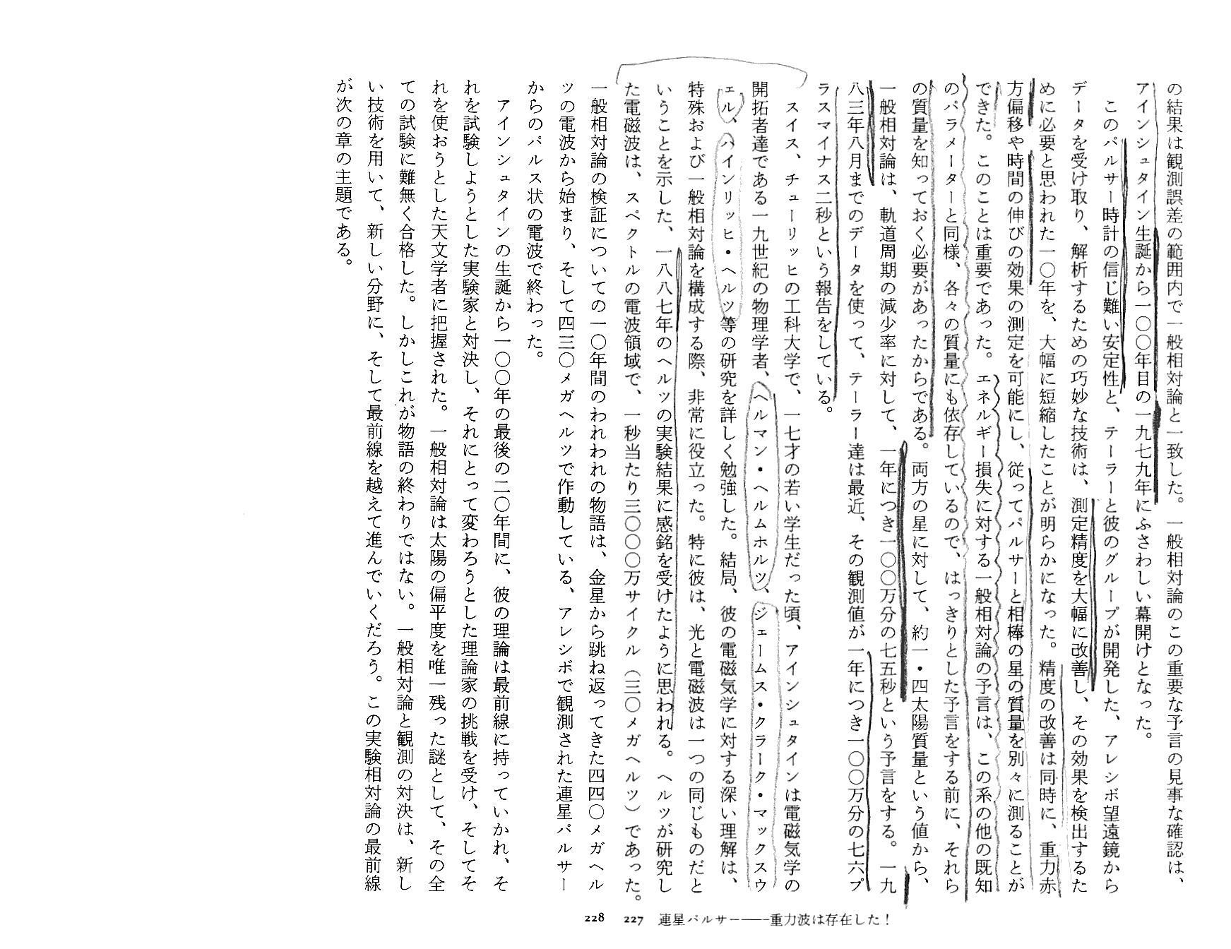 本稿引用のC・M・ウィル文献が書かれた時(1986年)以降の連星パルサーの新た発見と、連星パルサーを用いた天文学理論の発展については下記文献を参照されたし。
