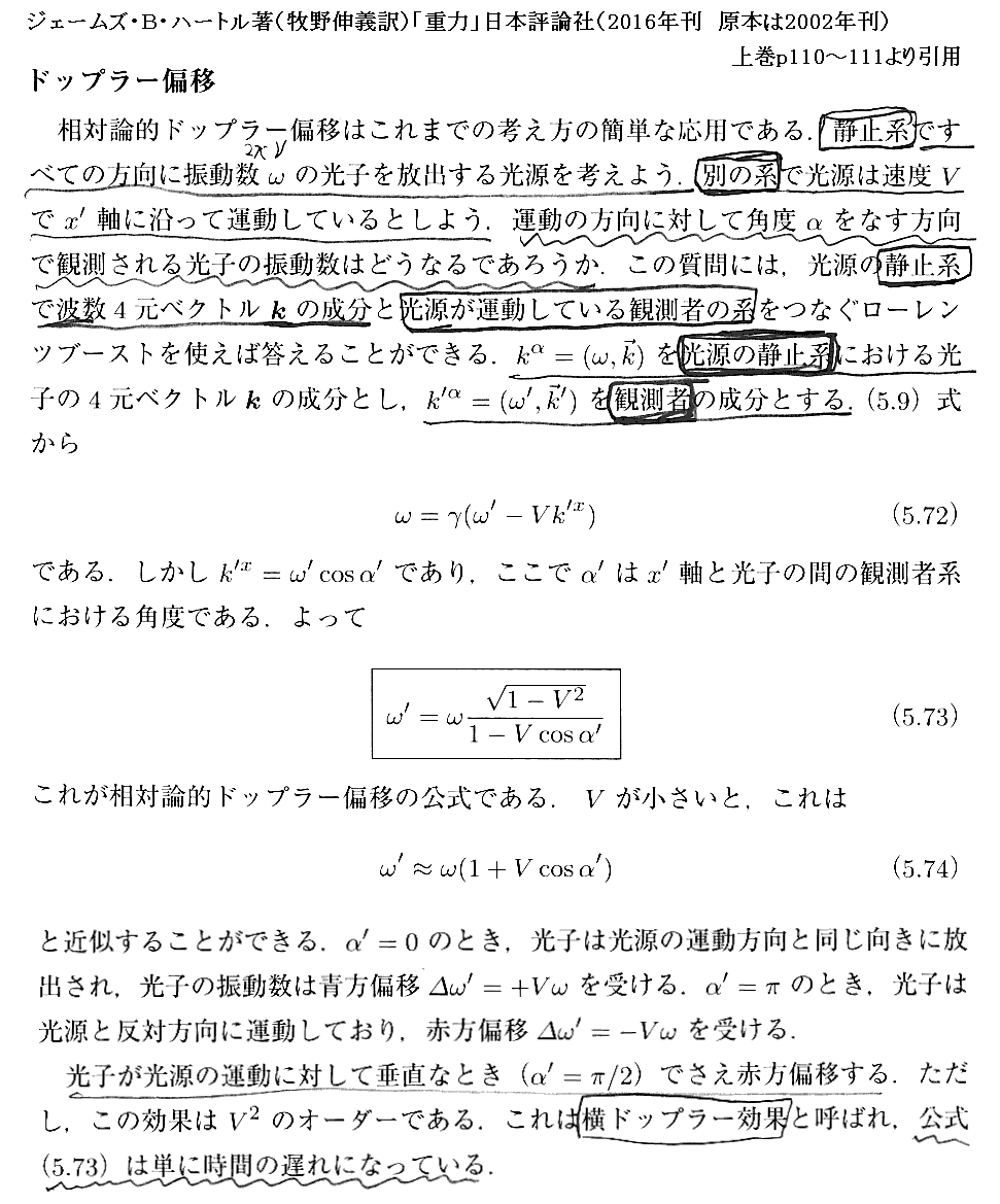 ジェームズ・B・ハートル著(牧野伸義訳)「重力」日本評論社(2016年刊 原本は2002年刊)の§10.1(p254〜256)より引用。
