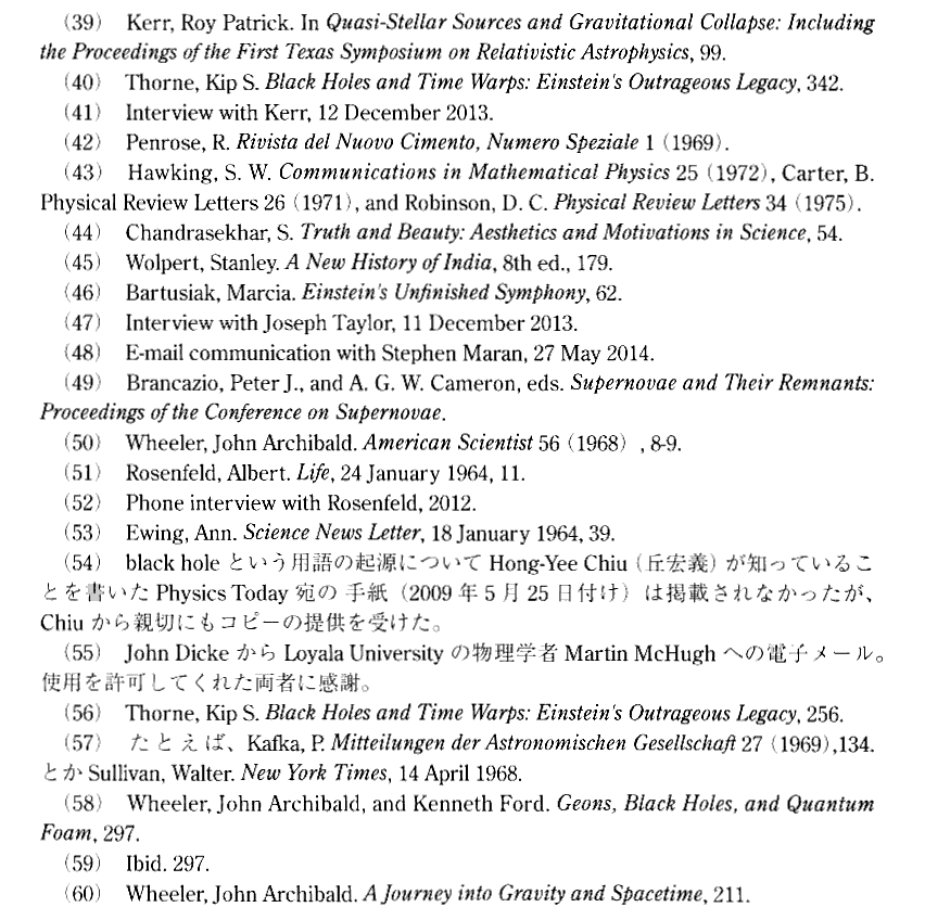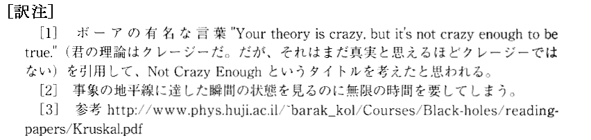 マーシャ・バトゥーシャク著「ブラックホール」地人書館(2016年刊)の原注と訳注