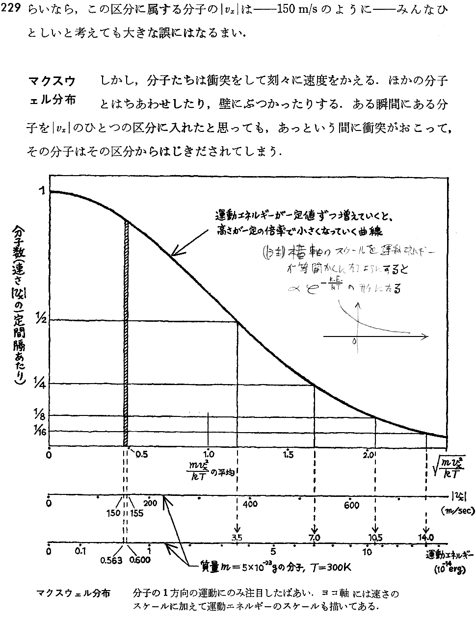 上記のグラフの形を理解するのは結構難しいです。別稿「マクスウェルの速度分布則1」2.〜3.を参照。