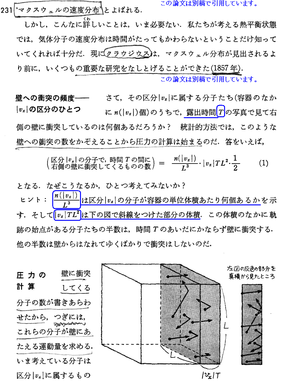 本節の内容は別稿「マクスウェルの速度分布則1“気体の動力学的理論の説明”(1860年)」で、より詳しく説明しています。