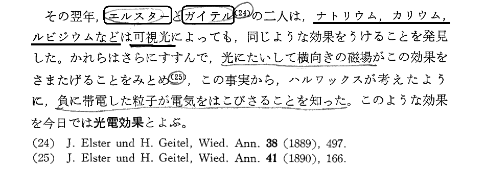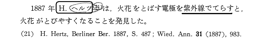 ちなみにレーナルトは陰極線の研究成果でノーベル賞を受賞したのですが、その受賞記念講演は、丁度アインシュタインが光量子仮説論文を発表した1年後の1906年5月に行われます。そのため、1905年までの光電効果実験から当時の物理学者が得ていた認識が、アインシュタインの考え方とかけ離れたものであることがこの講演内容から解ると思います。