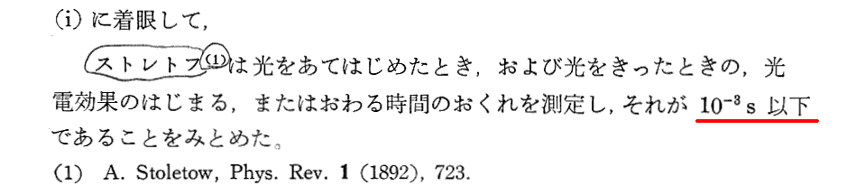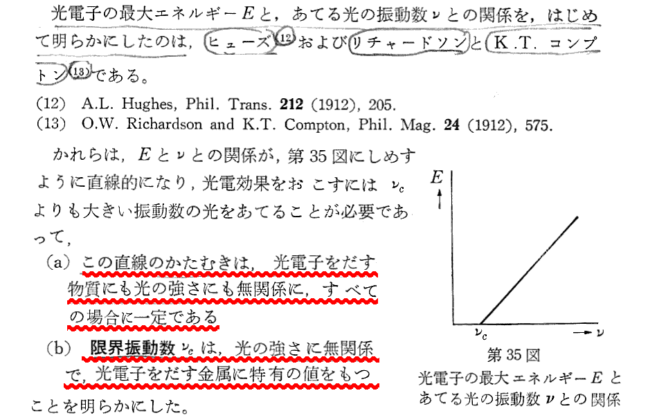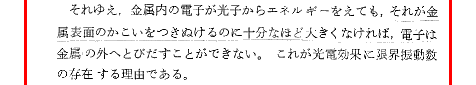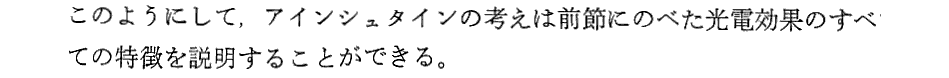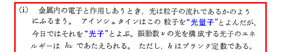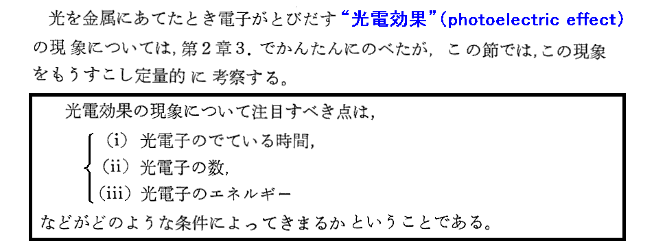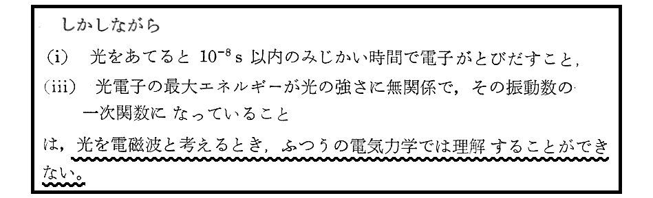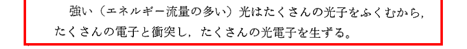 補足しますと、アインシュタインが光量子論の論文を書いた1905年当時には、光電効果の示す特徴的性質の最も重要な部分は、まったく明らかでは無かったのです。