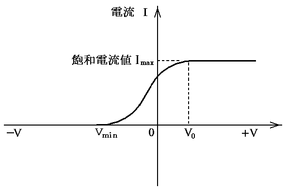 このことは、飽和電流値が減少を開始する電圧値V0についても言えます。