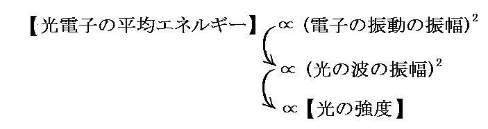 つまり光の波が入射して、電子がこの波の電磁場振動に共振し、電子は光の波からエネルギーをもらって次第に大きな振幅で振動する様になり、やがで物質の外に飛び出てくる。この推論によると