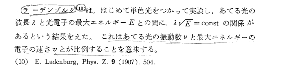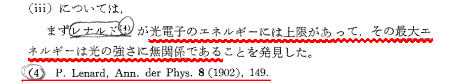 1902年の論文でレーナルトが報告した光電子のエネルギー値には最大値があり、それが、光の強さに無関係である事の発見はとても重要です。