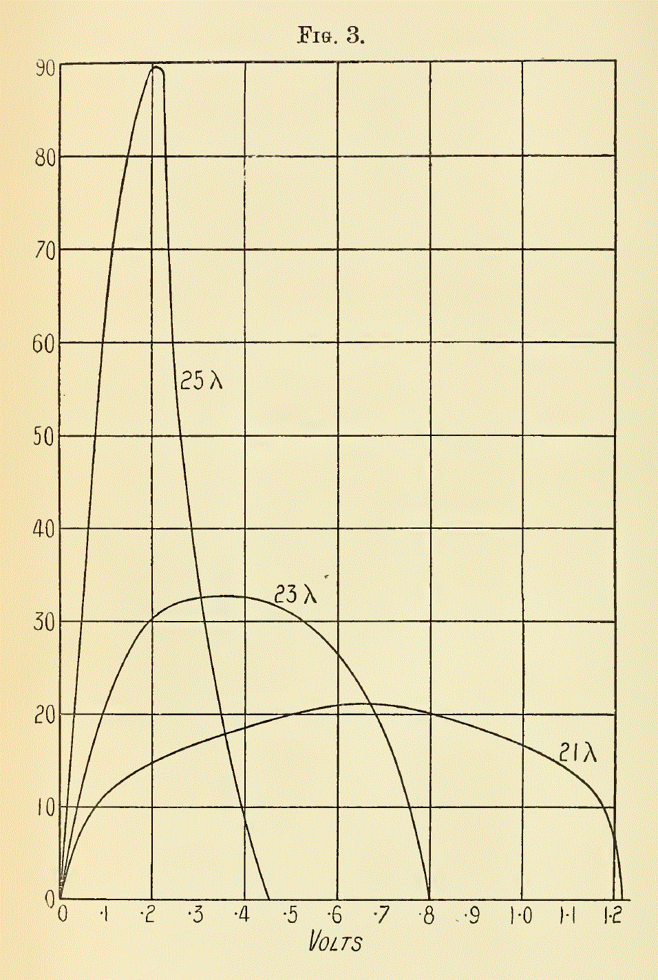 ただし、以下の説明を読まれれば解るように、このやり方で測定される電位差Vが実際に光電子の持つ運動エネルギーの最大値の決定に使えると言うことが確定するまでに、様々な困難を乗り越えなければならなかったのです。