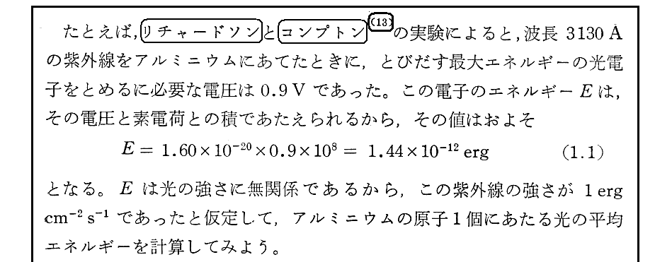 荒木源太郎著「原子物理学」倍風館(1963年刊)の 2-3.光電子、4-1.光電効果、4-2.光子 から引用。ただしかなり改変しています。