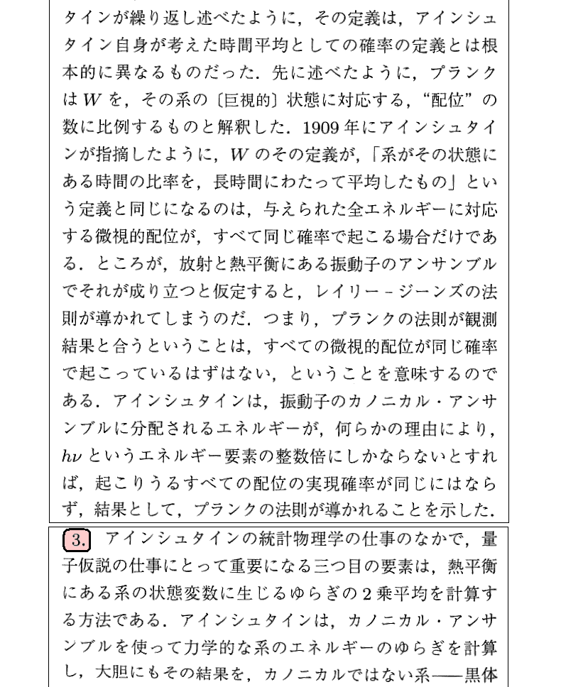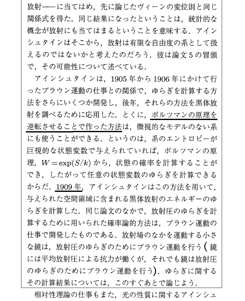 Pais文献のW.19.や、谷川安孝著の別稿「Einsteinの量子論と量子力学批判」や、江沢洋著「統計力学へのアインシュタインの寄与」などと対比しながら読まれると理解が深まると思います。