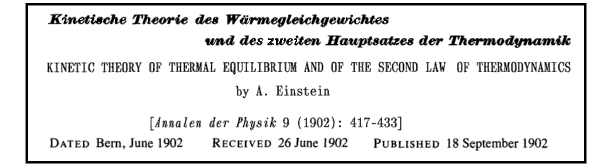 A.Einstein著, “Kinetische Theorie des Wa¨rmegleichgewichtes und des zweiten