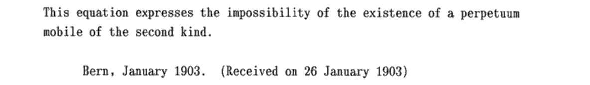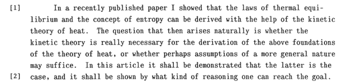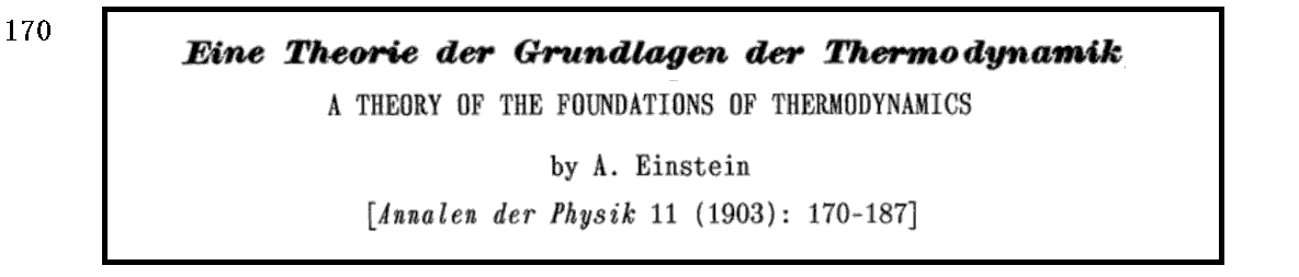 A.Einstein著, “Eine Theorie der Grundlagen der Thermodynamik”, Annalen der Physik, ver.4, vol.11, p170〜187, 1903年