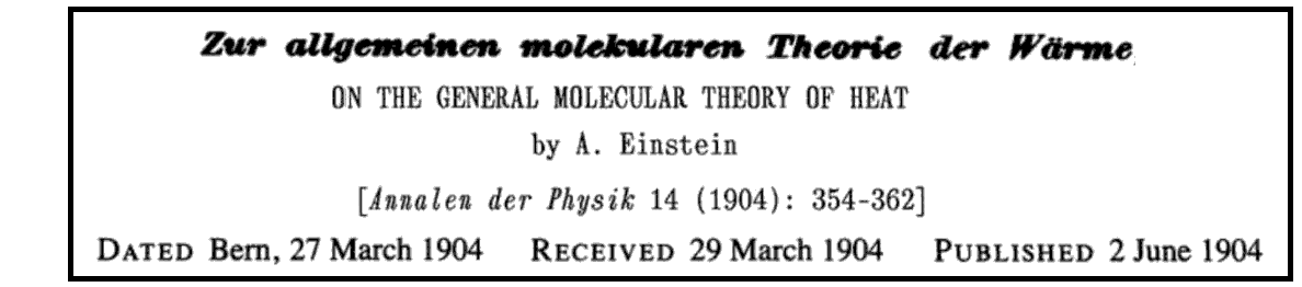 A.Einstein著, “Zur allgemeinen molekularen Theorie der Wa¨rme”, Annalen