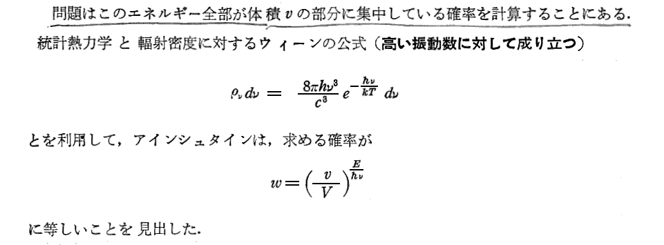 上記展開の詳細はEinsteinの光量子論第1論文(1905年)でご確認下さい。