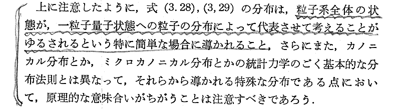 上記の注記 *** の様に“ミクロカノニカル集団”を用いる導入を、原島鮮著「熱力学・統計力学」13.(3)量子小正準集団 で示しておきます。