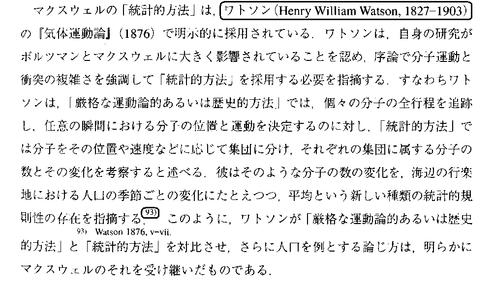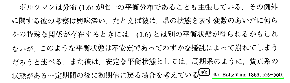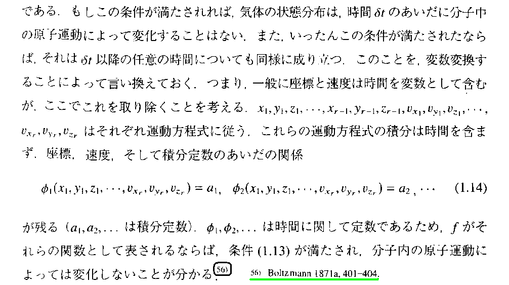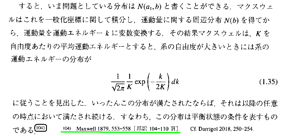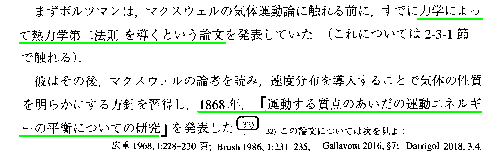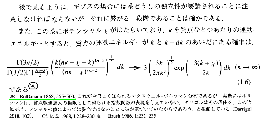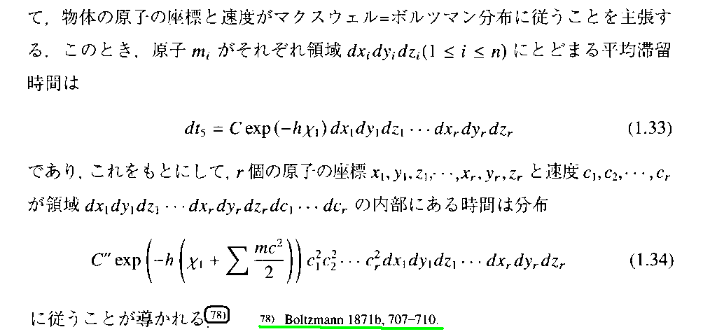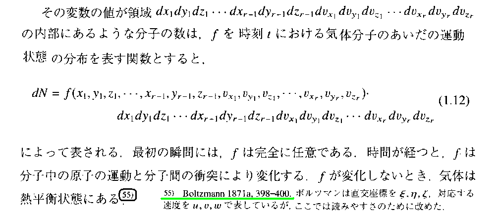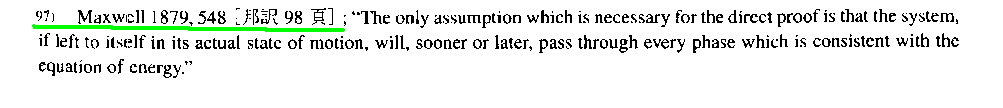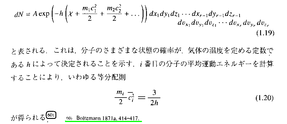 これは、稲葉肇著「統計力学の形成」名古屋大学出版会(2021年刊)の第1章 からの引用です。別windowで 参考文献一覧 を開いて参照されながらお読み下さい。