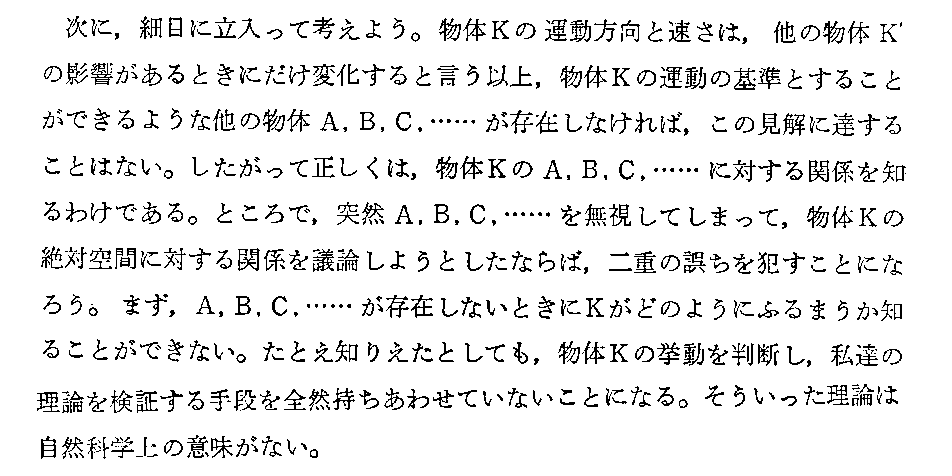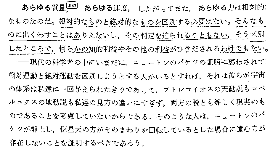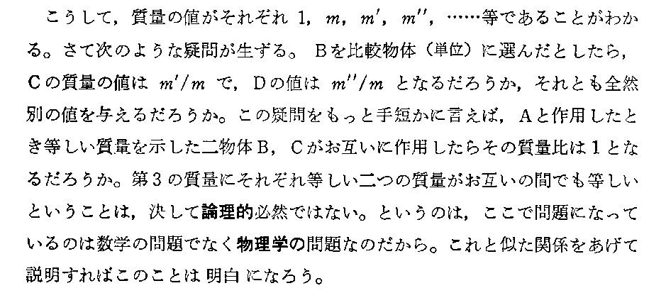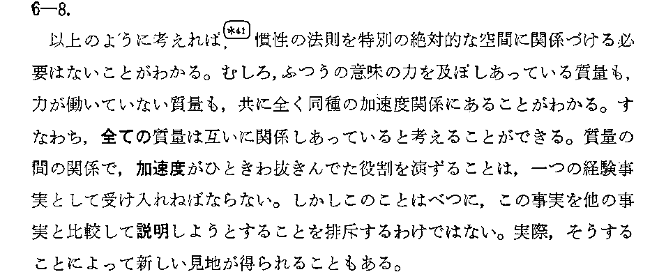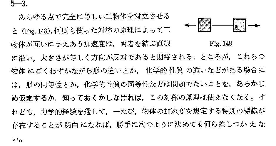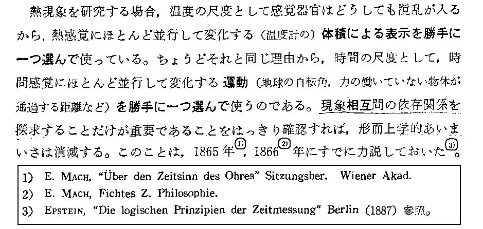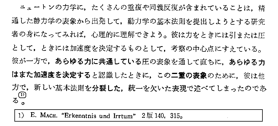 Einstein は、相対性理論を作り上げる際に、マッハ『力学』第U章の特に§6〜§7から大きな影響を受けたと語っています。その事に付いてはこちらと、こちらを参照。