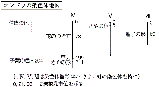 エンドウは7対の相同染色体を持つが、メンデルが研究した7つの対立形質は全てが別々の染色体上にあるわけではない。そのため対立形質の組み合わせによっては独立の法則に従わないものが出てくる。